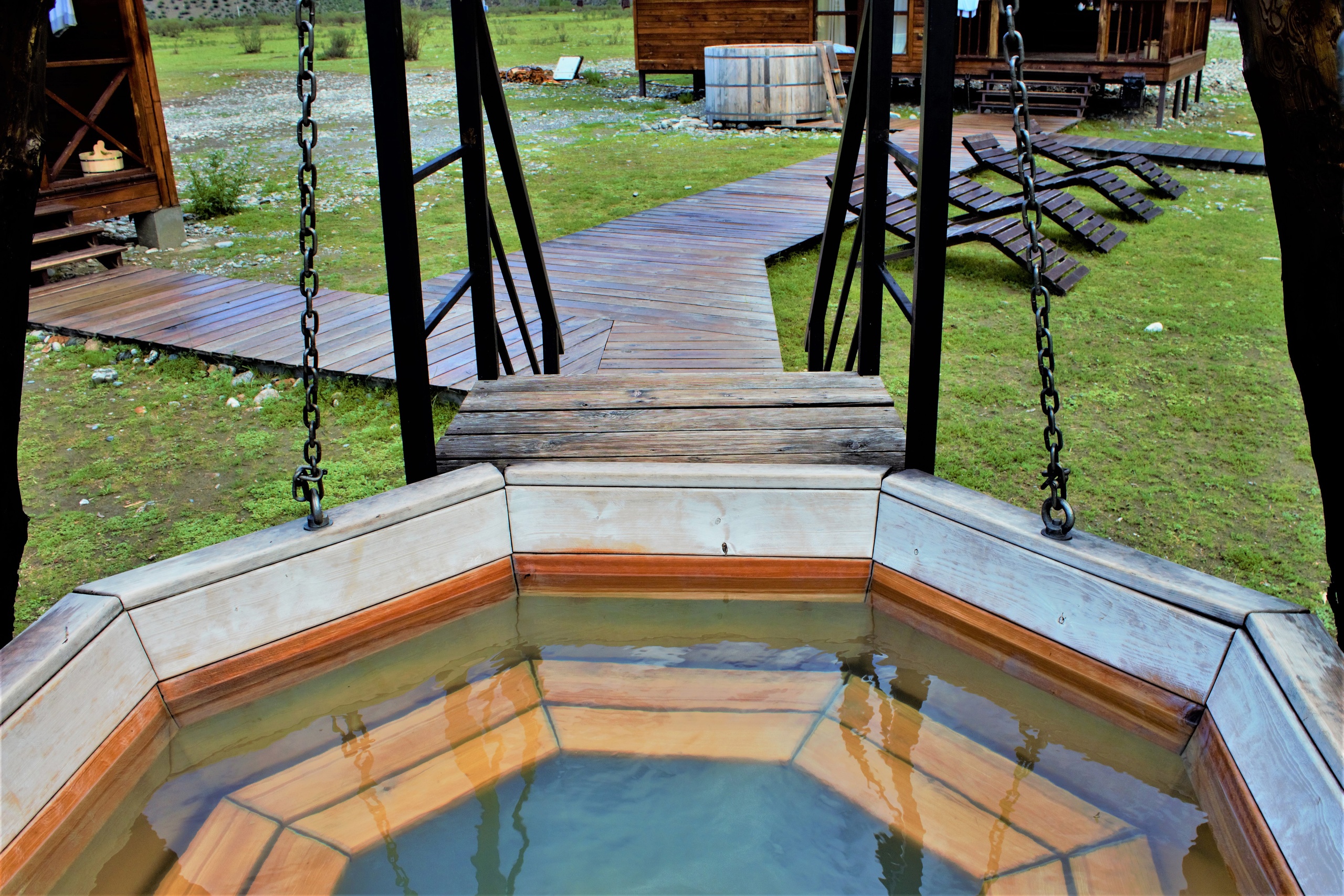 Вас ждут уютные благоустроенные национальные алтайские жилища, гостевые дома, коттеджи, беседки на берегу реки Катунь, кафе, баня, а также экскурсии и развлекательная программа.
