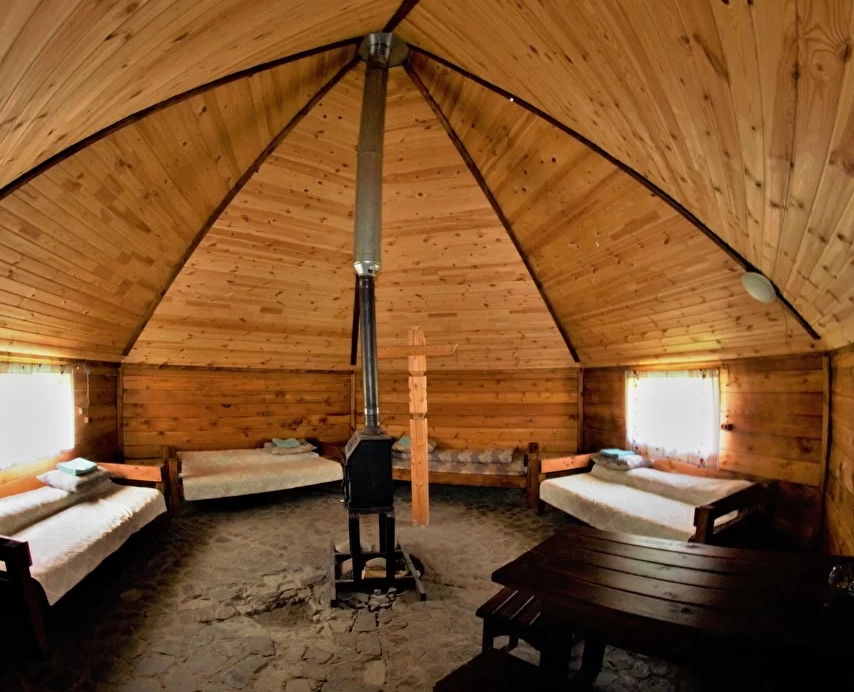 Аил -это скорее летнее жилище для наших гостей. Костер по центру аила-скорее для созерцания, чем для отопления. На всю ночь не протопишь. Тепло выйдет в дымоход в крыше.(алтайцы спали и зимой -только шкурами укрывались) если заезд попадает на прохладную погоду -рекомендуем гостям взять термобелье и/или спальники.