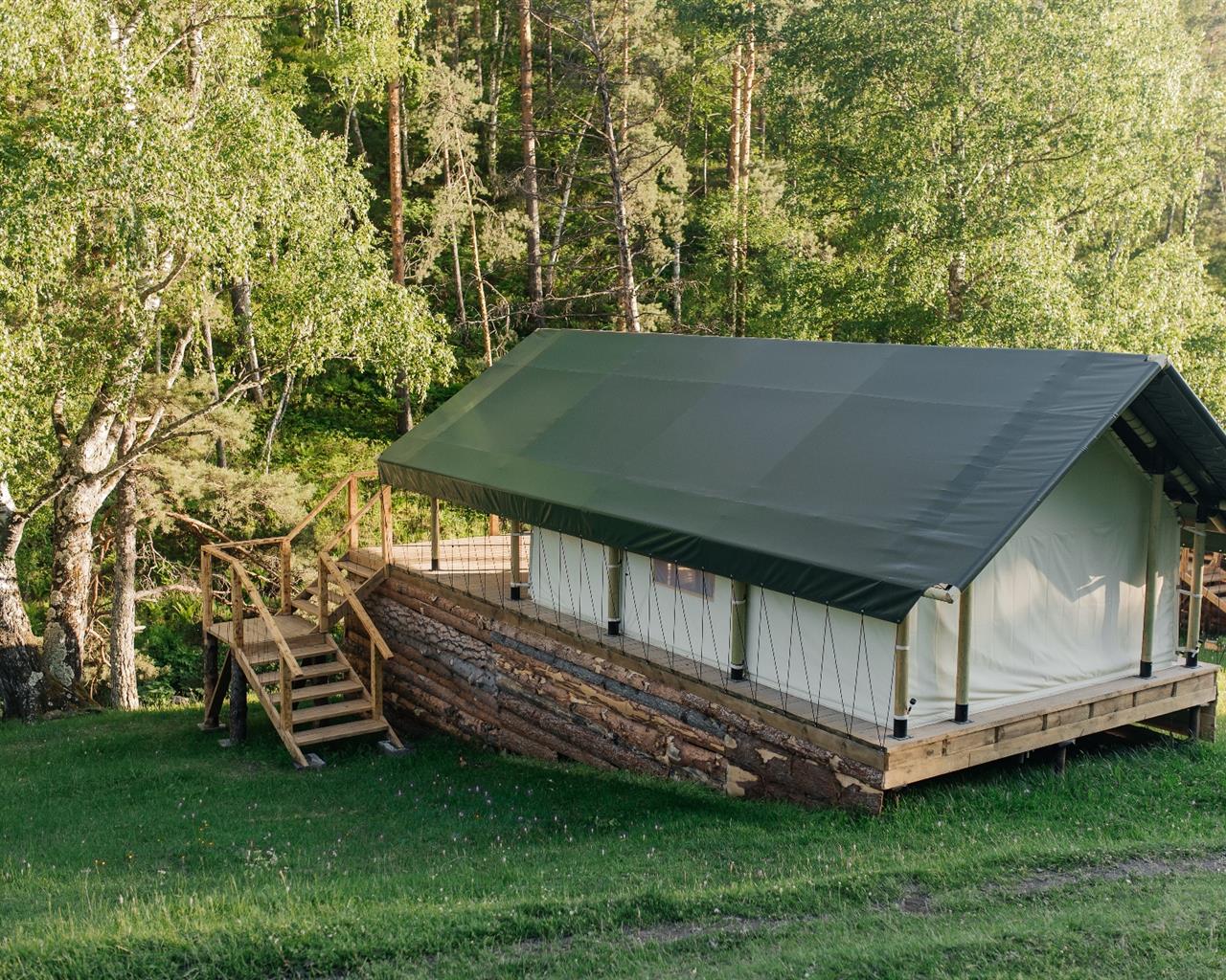 «Бадан глэмпинг» расположен на берегу горной реки Куюм, под склоном горы. На территории глэмпинга располагаются 6 летних сафари-тентов и круглогодичное шале A-frame в форме треугольника. Они оснащены всеми удобствами для комфортного проживания. Личный санузел, мягкая теплая кровать, зона отдыха и неповторимый вид на горную реку.