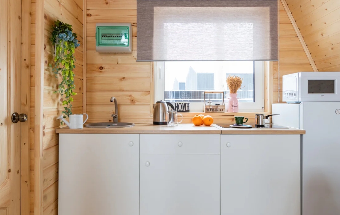 - 3 средних домика на 4-6 человек с одинаковым оснащением