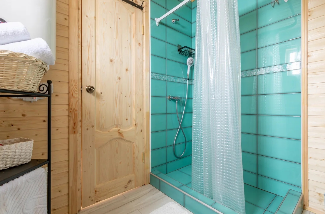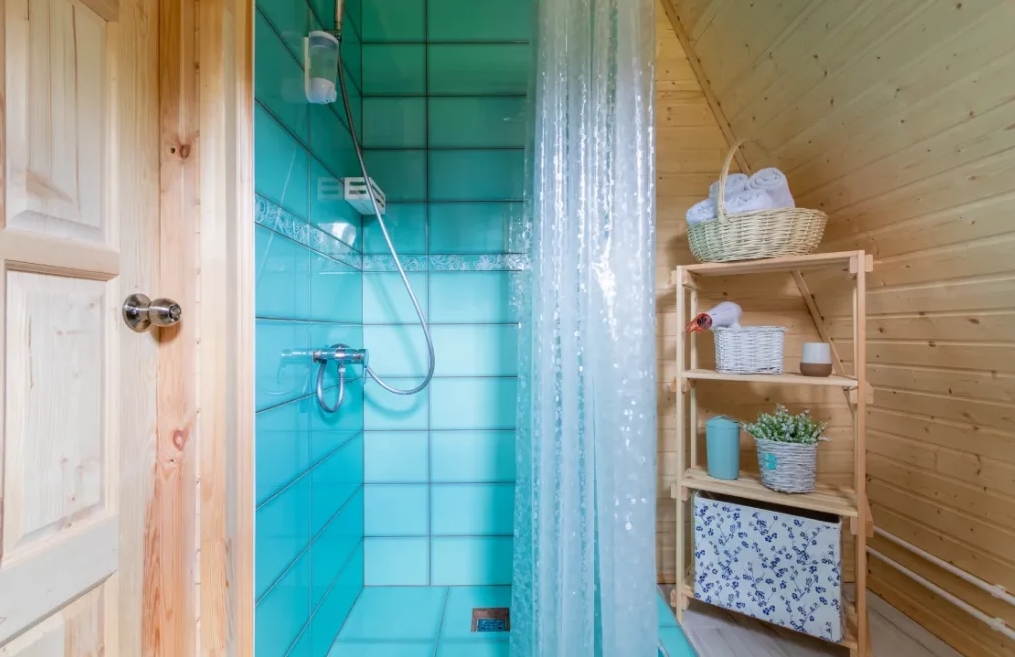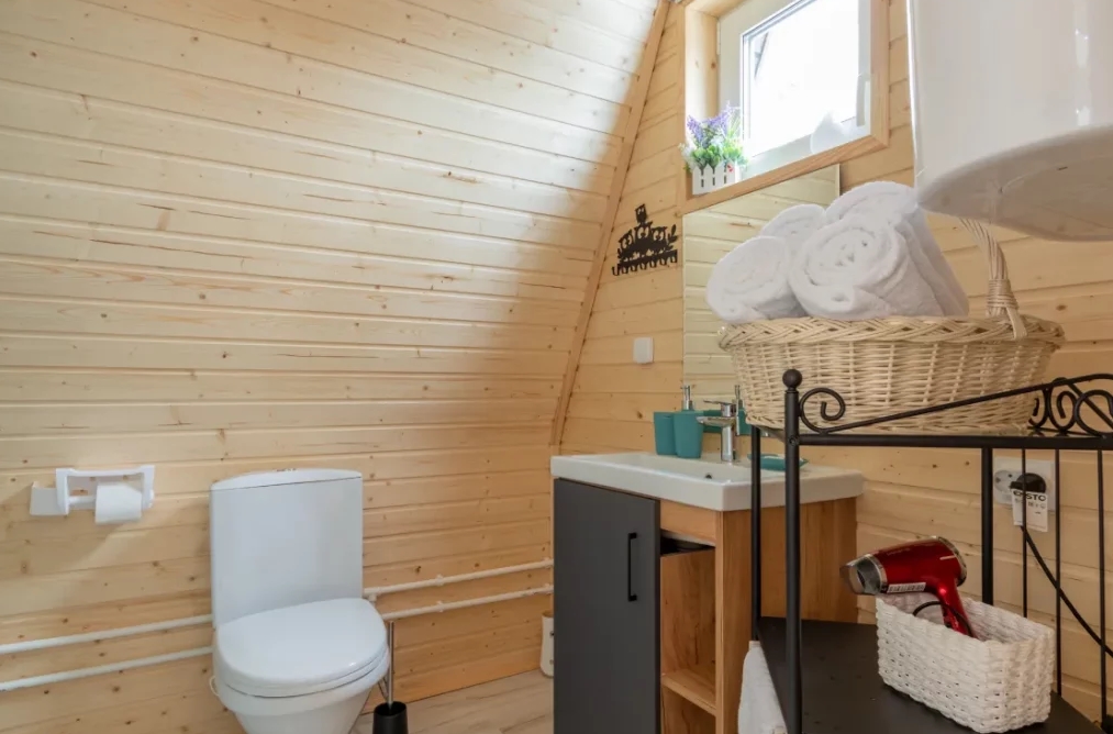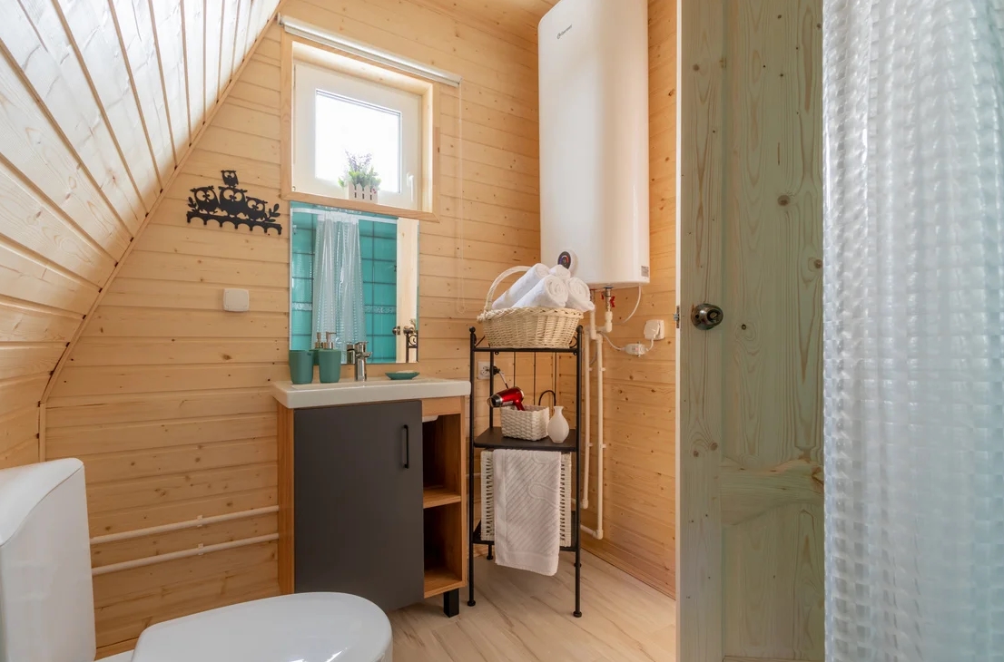Санузел и душевая с горячей водой находятся в шале. Здесь есть все для личной гигиены: гель для душа, фен и белоснежные полотенца.