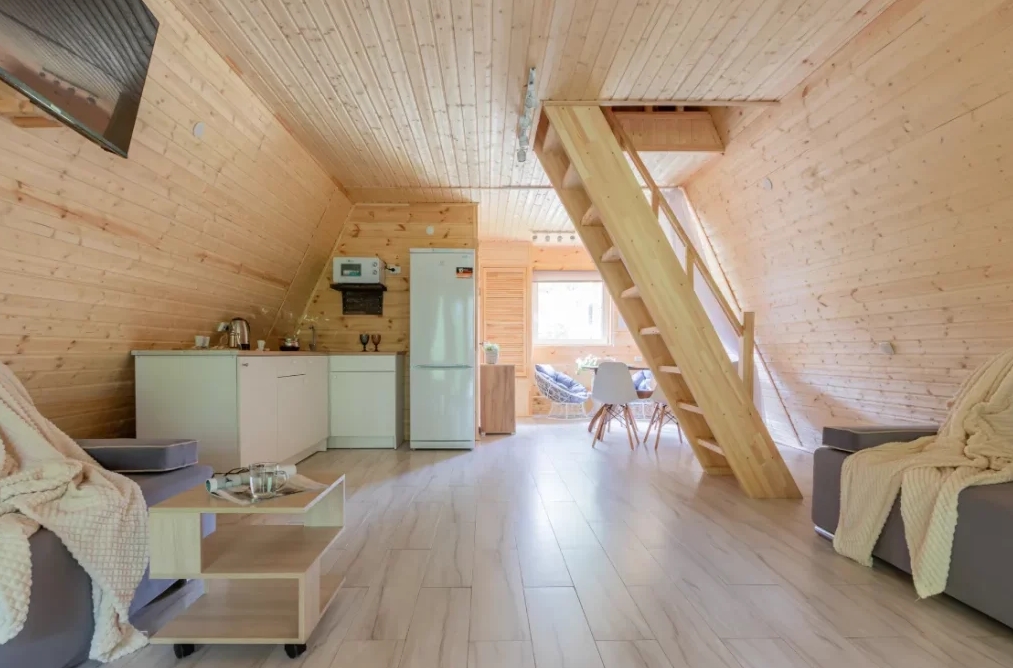 Пять треугольных домиков — шале в Светлом рядом с Красным озером: 10 минут пешком.