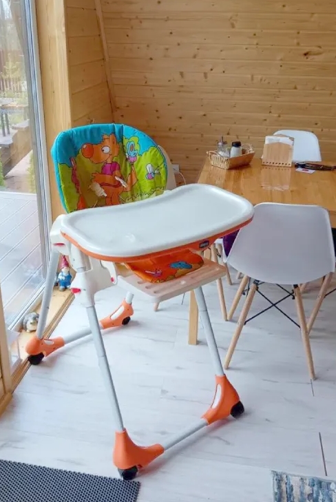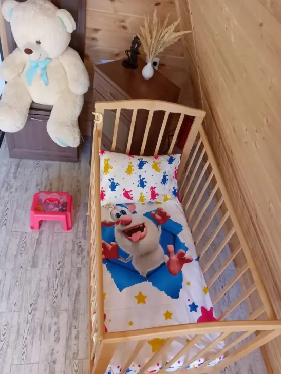 В наших домиках можно отдыхать с детьми любого возраста. У нас есть кроватка и стульчик со столиком для кормления.