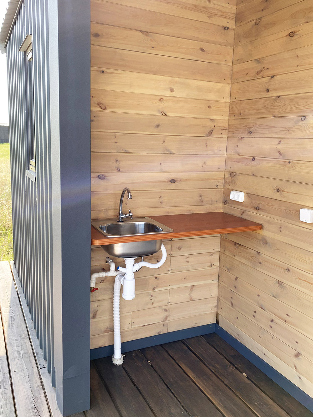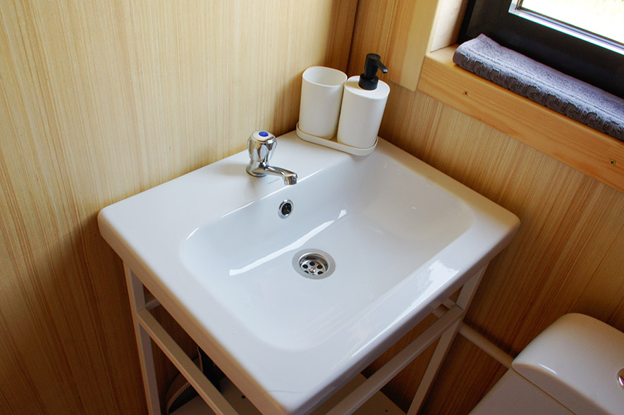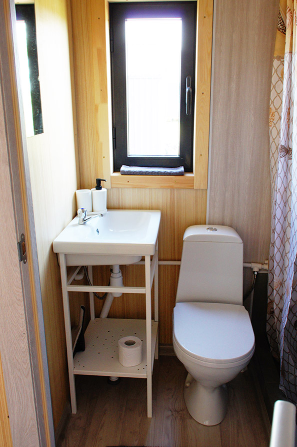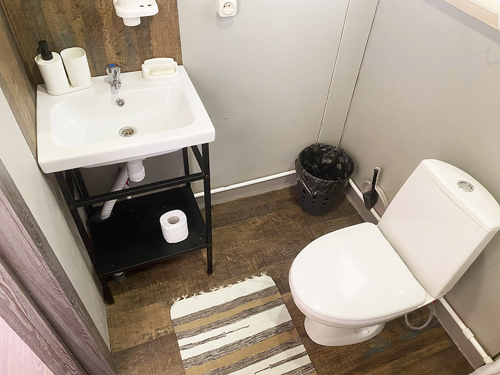Комфортные туалет и горячий душ расположены в отдельном санблоке в 20 м от домиков SMART.