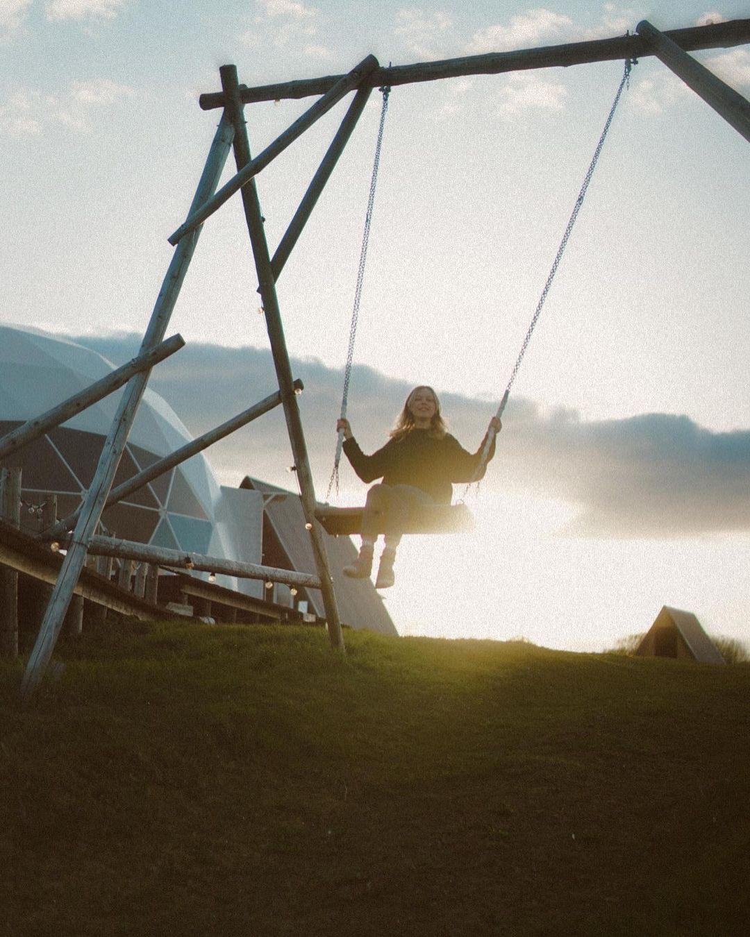 - Парковка, качели, большая видовая терраса у Главного шатра (общественное пространство) с мангалом и костровой чашей. Удобные кресла и пледы. Собственные террасы у каждого шатра. Детская площадка, волейбольная площадка, полноценная кухня (отдельное здание), отдельный блок с санузлами, прачечная