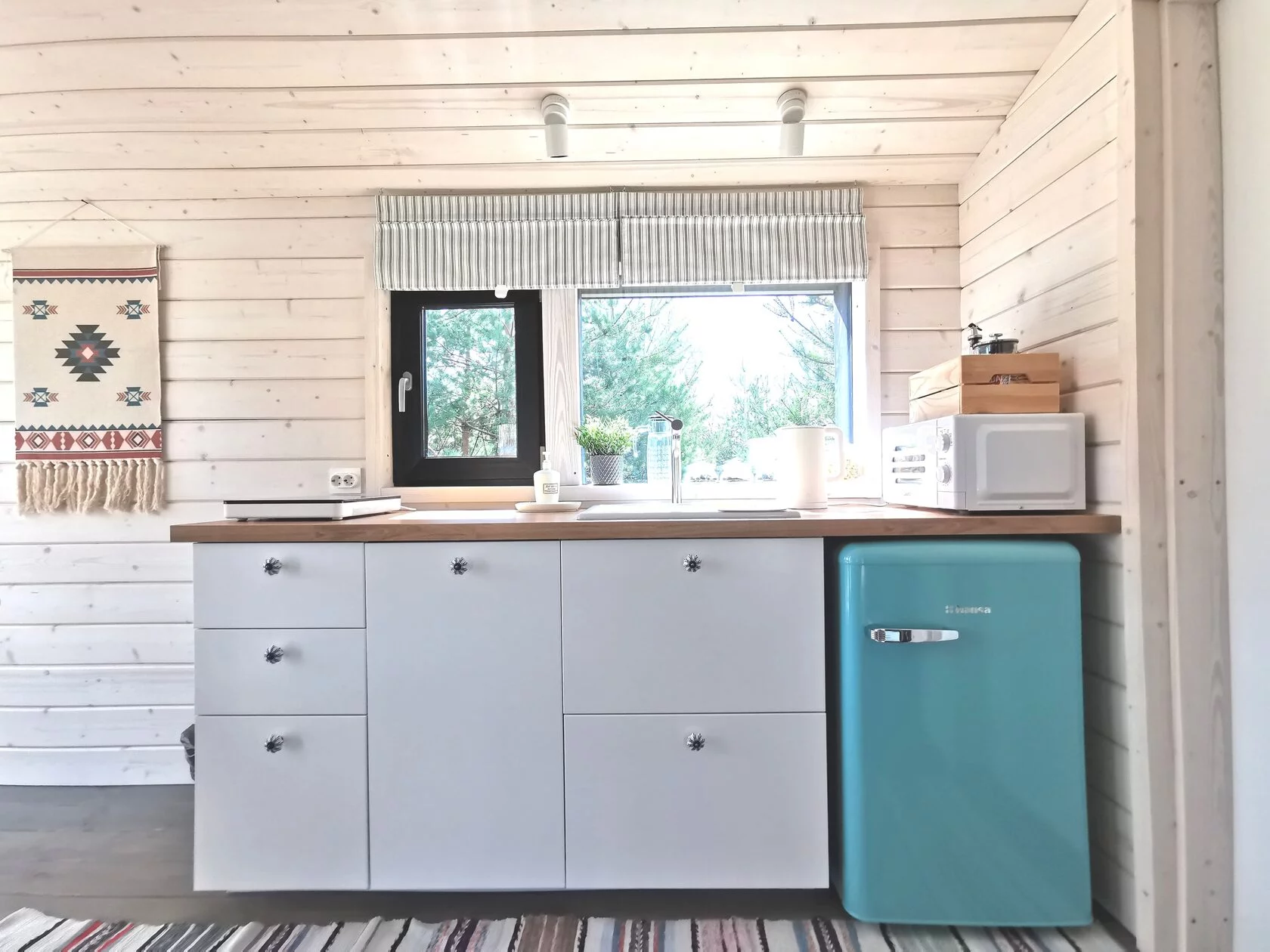 В доме есть уютная спальня, кухня-гостиная, санузел, веранда и терраса. В гостиной установлен раскладной диван, телевизор с эфирным телевидением, Smart-TV и подпиской Ökko. Также в вашем распоряжении виниловый проигрыватель с коллекцией пластинок, небольшая библиотека и настольные игры.
