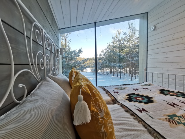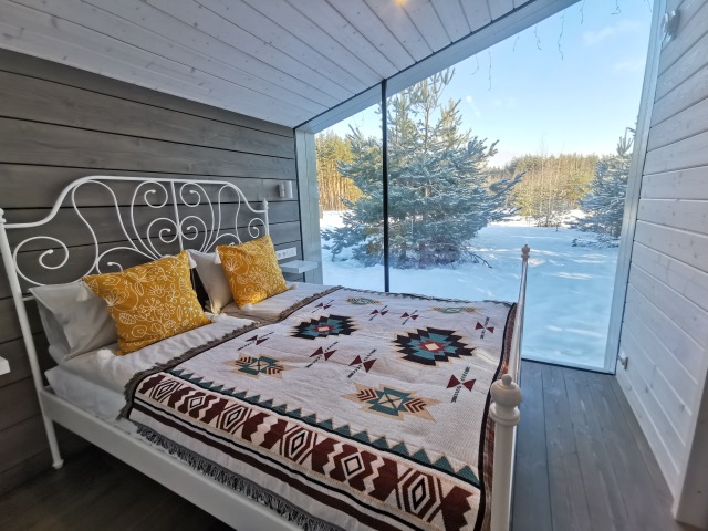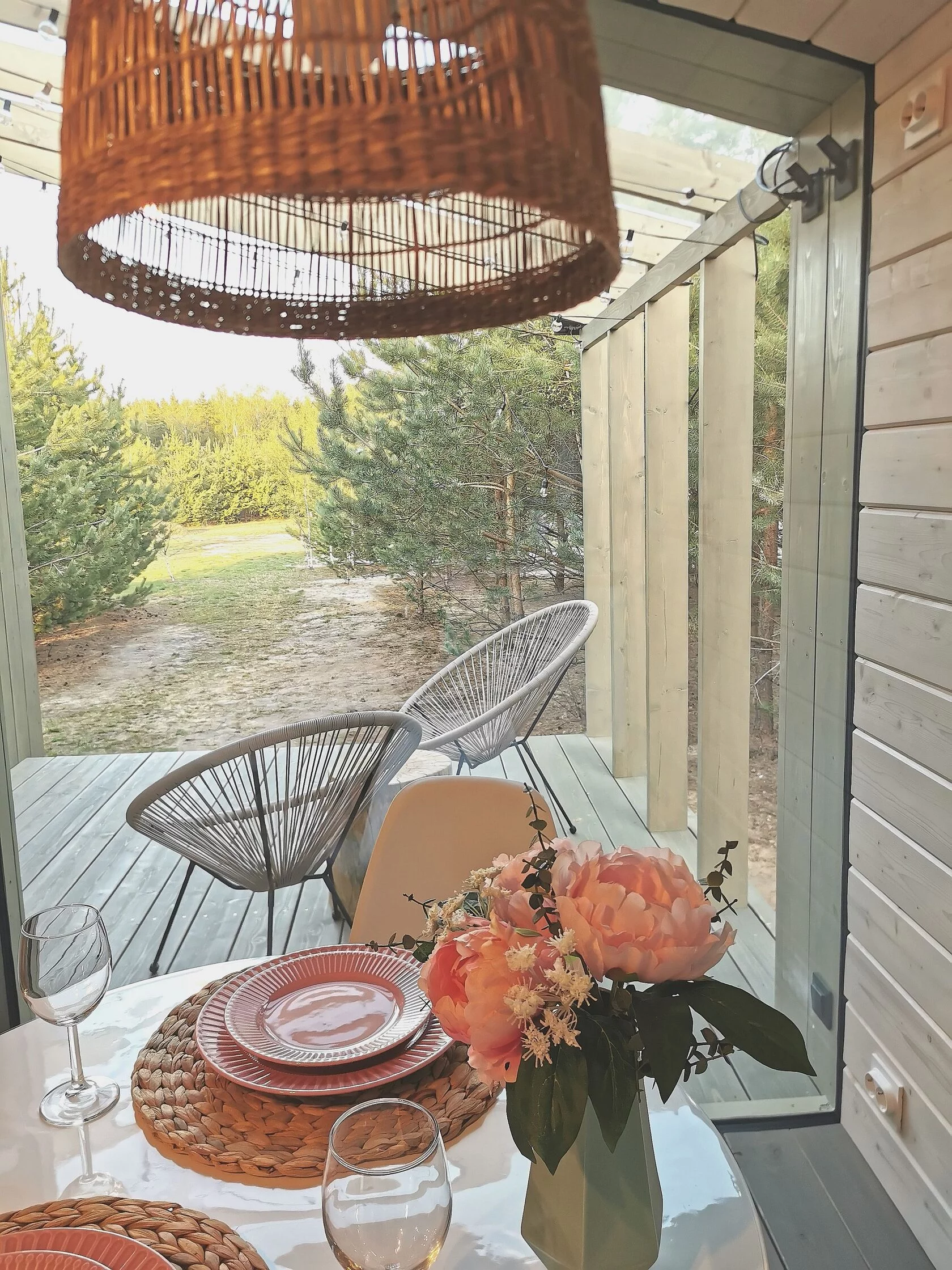 На веранде можно расслабиться на овчинках в креслах Jysk с чашечкой ароматного травяного чая. Рядом с домом расположена зона барбекю с мангалом и костровищем. Для вашего удобства предоставляются шампура, решетка и охапка дров для костра.