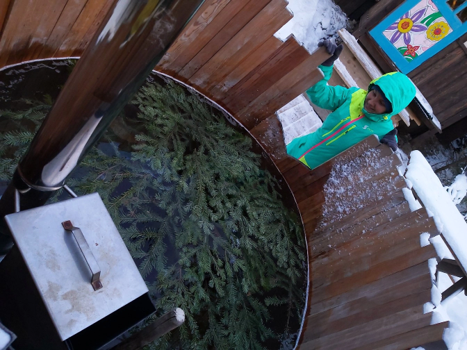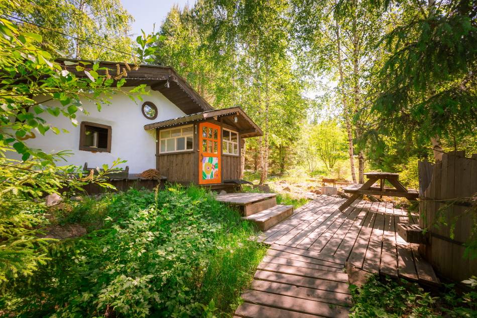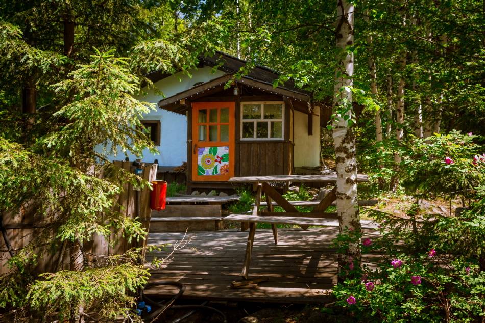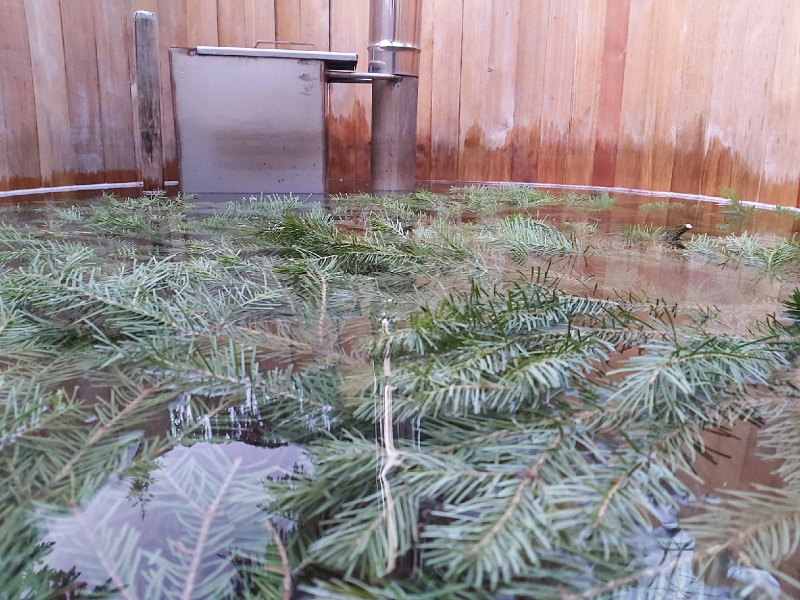 Каждый домик оборудован террасой для пикника и горячей купелью с высокими бортиками от ветра, что делает отдых еще более комфортным.