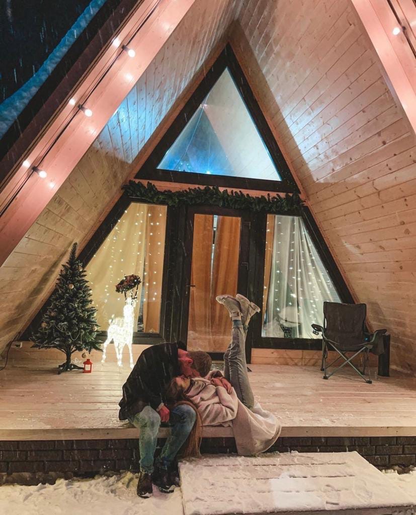 Для любителей больших компаний можем предложить три домика в стиле А-фрейм, которые разместят в себе до 12 гостей!