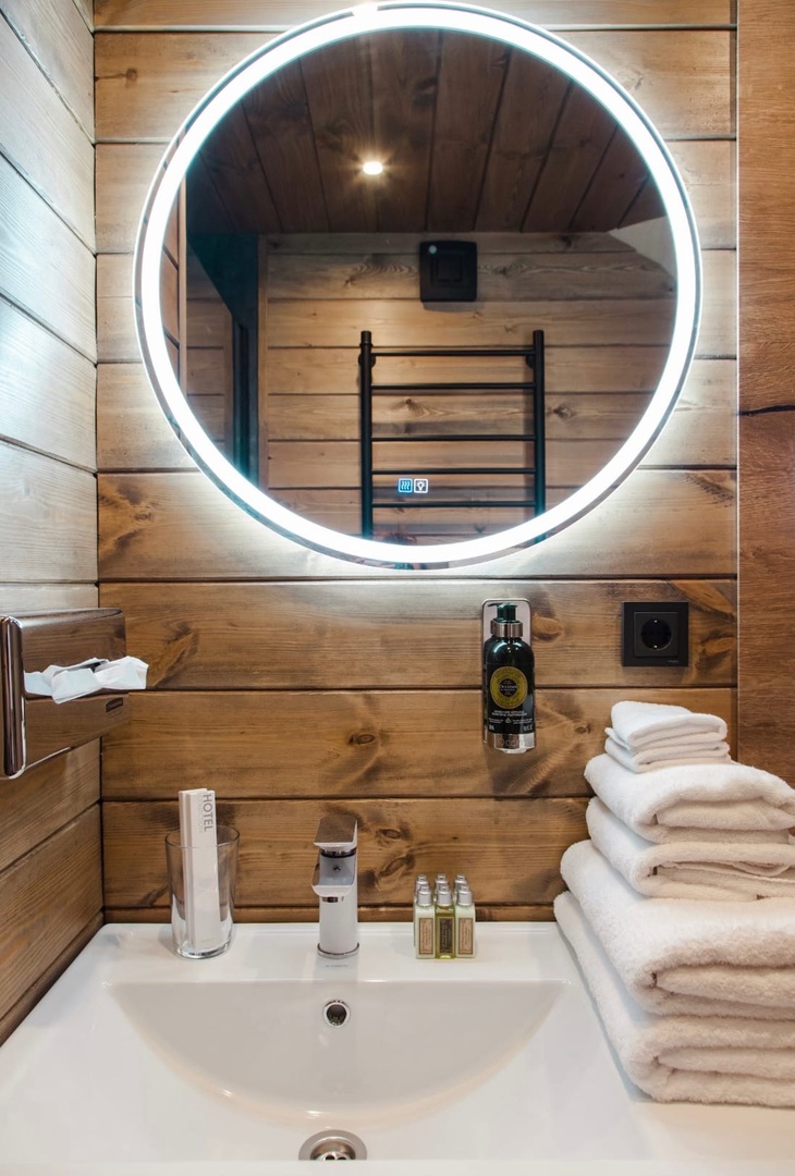 В номере есть все удобства. На территории вы можете сходить в кафе, парную или покататься на SUP-бордах.