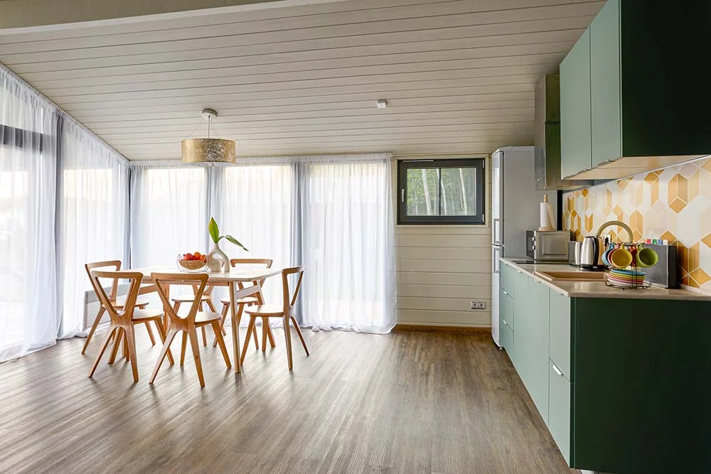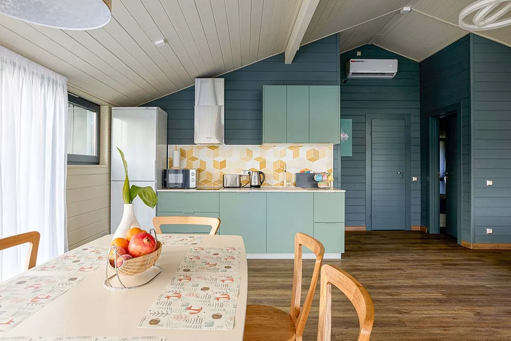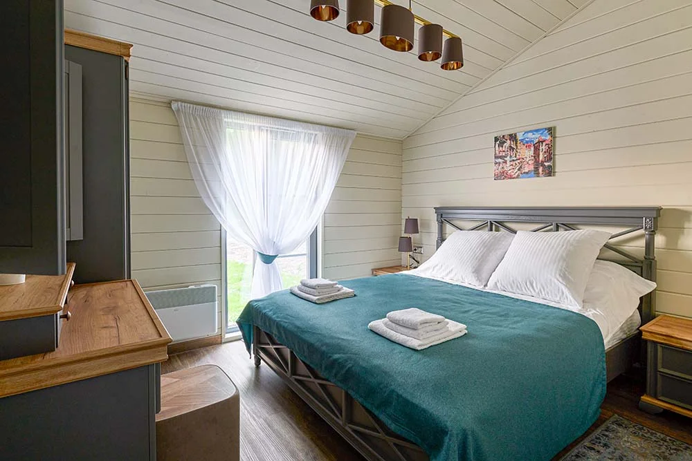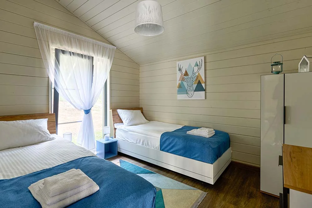 В каждом доме могут разместиться до 6 человек, есть две отдельных спальни.
