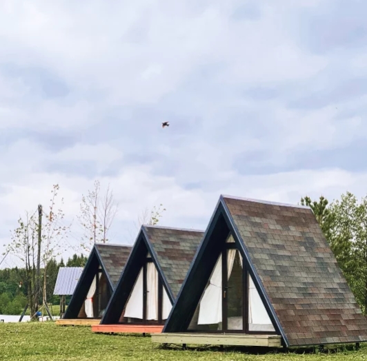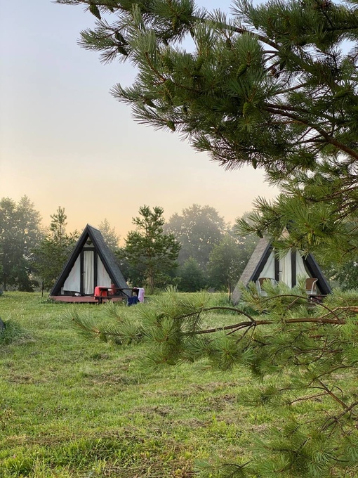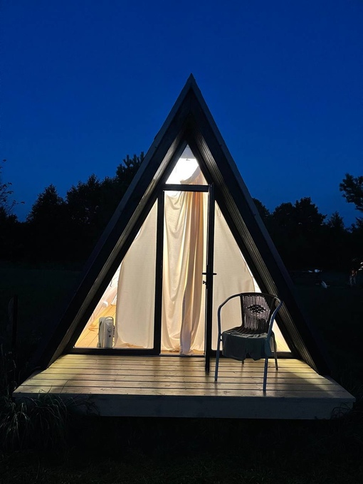Маленький летний, но утепленный домик-вигвам на двоих, современный формат отдыха на приоде с комфортом. Всего на территории 6 А-фреймов