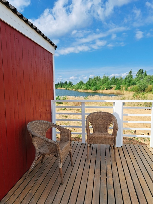 Изюминка домиков - это просторная терраса с удобными креслами, на которой так приятно проводить вечера.
