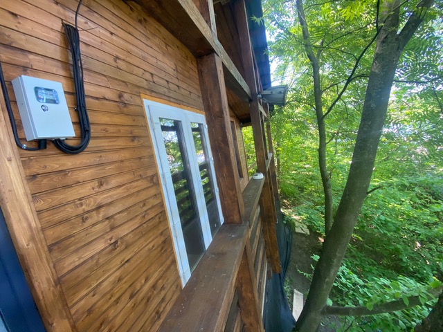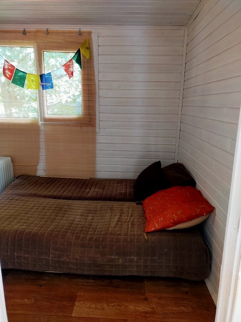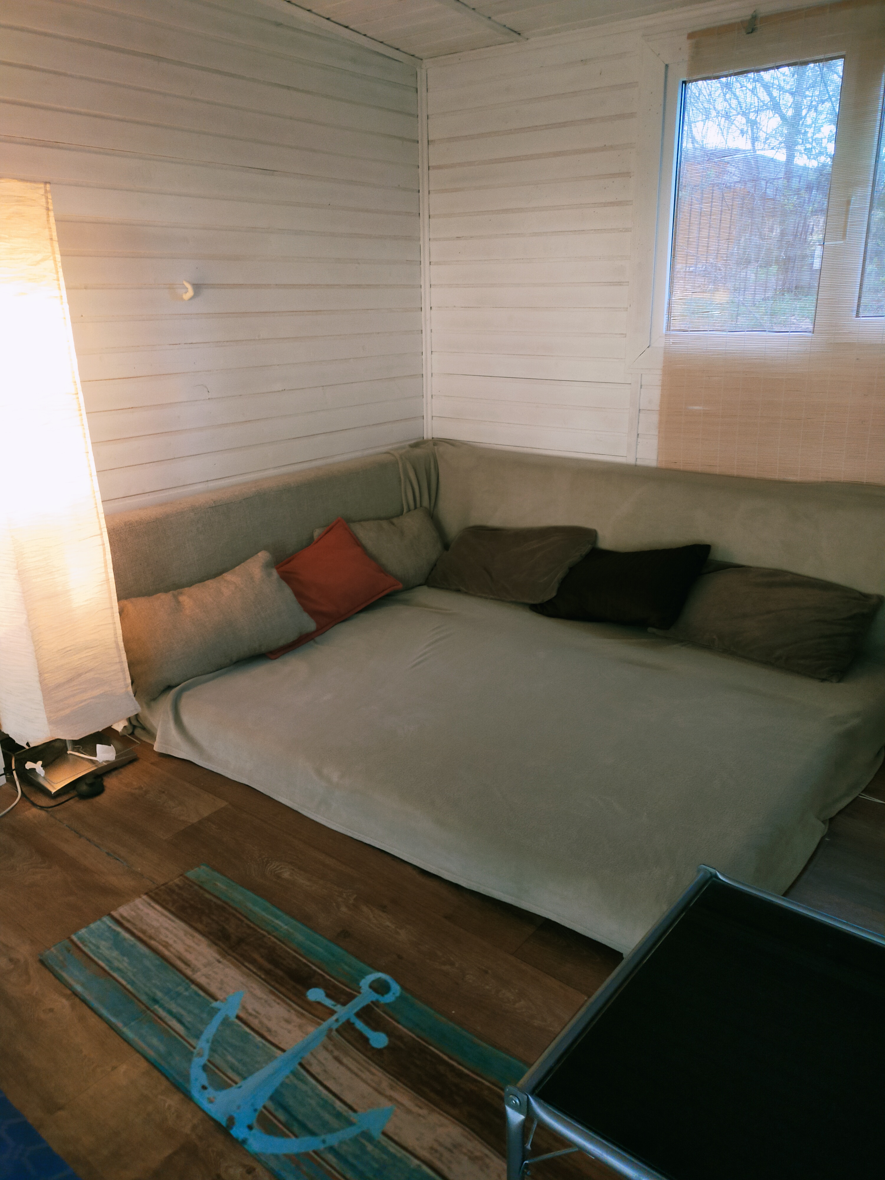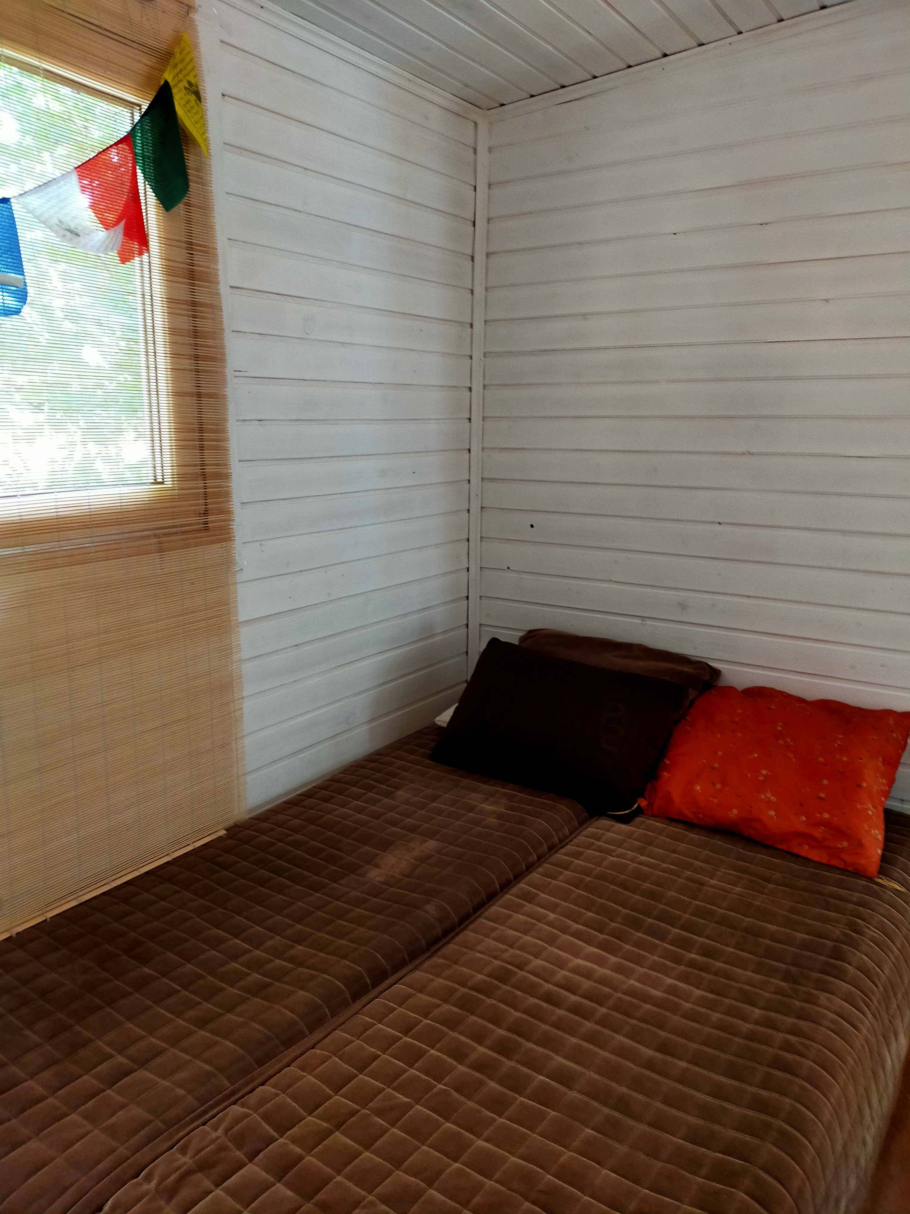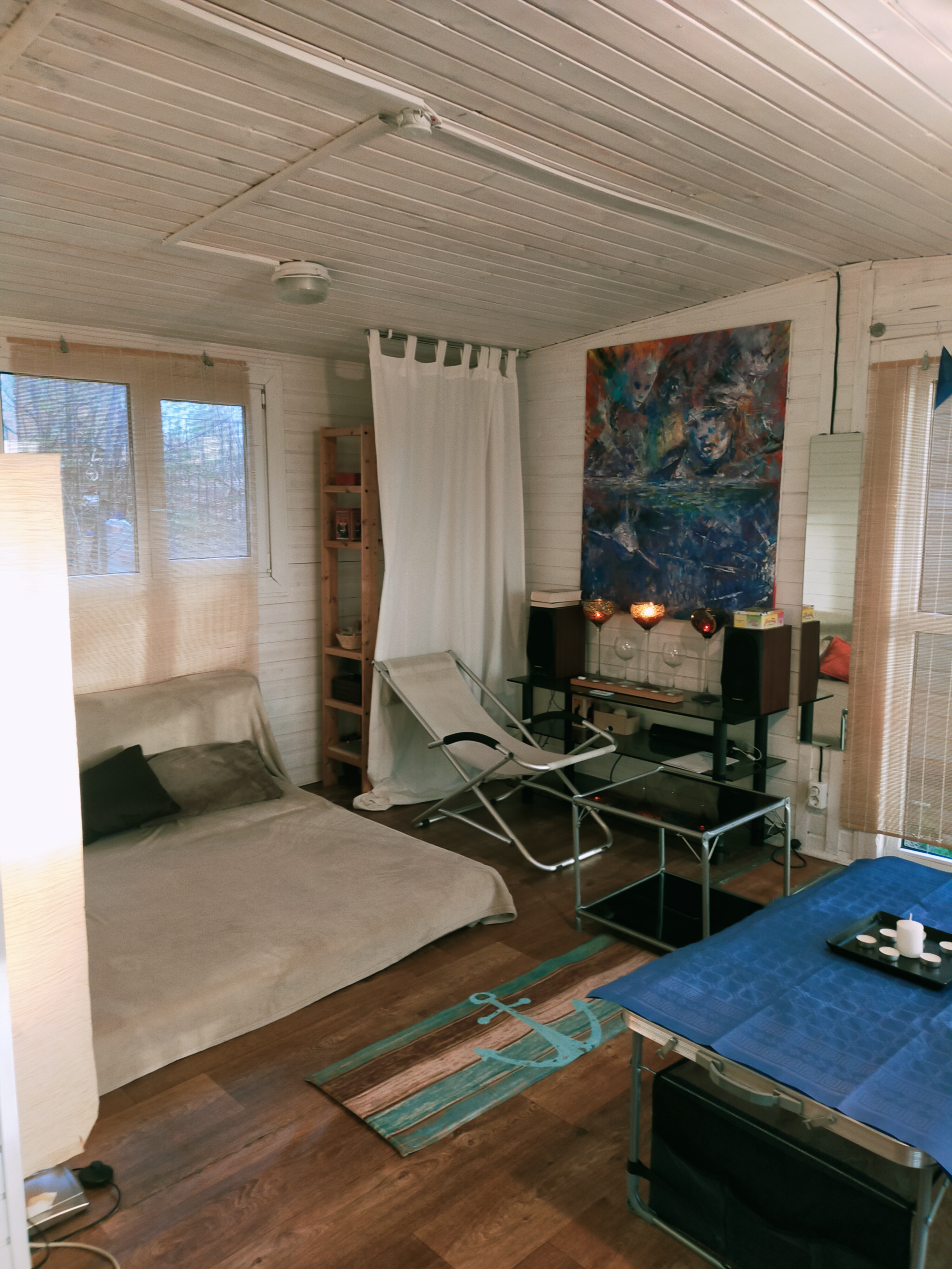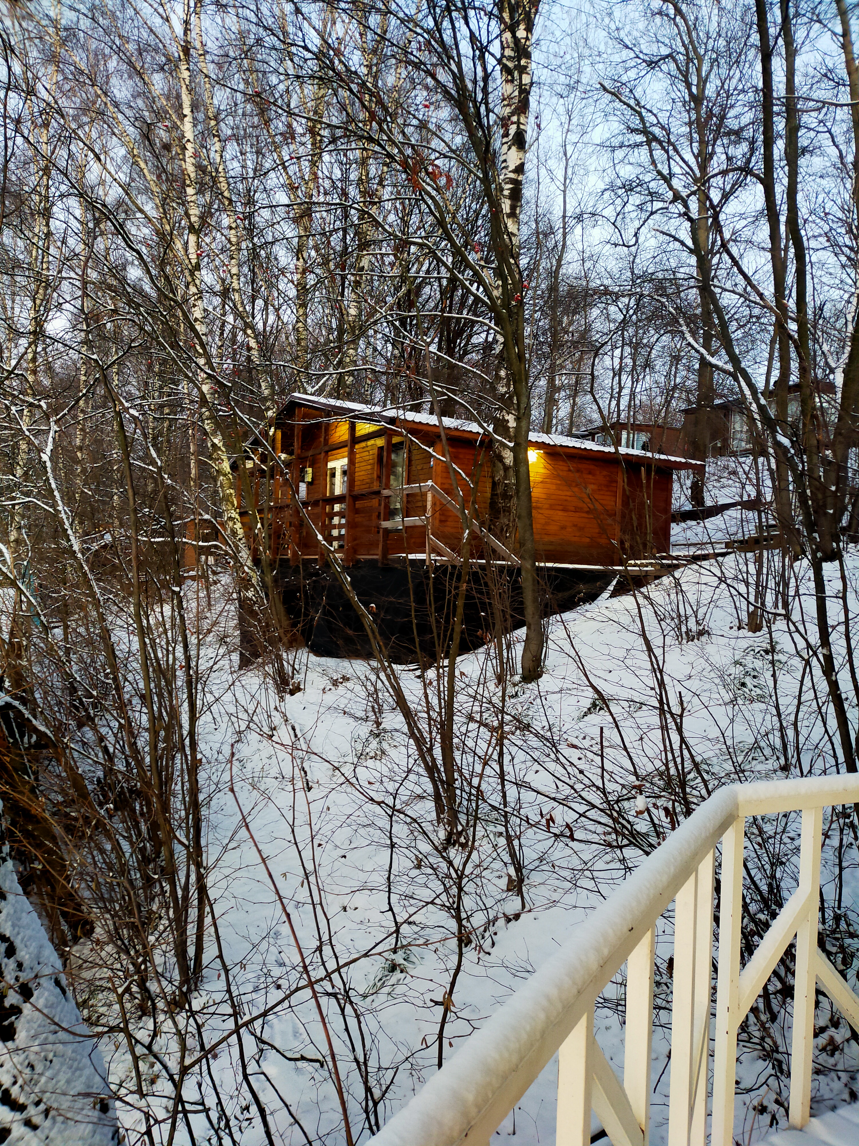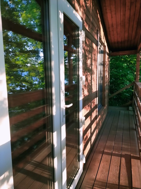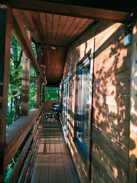 В домике есть гостиная, туалет, душ с горячей и холодной водой, терраса при входе.