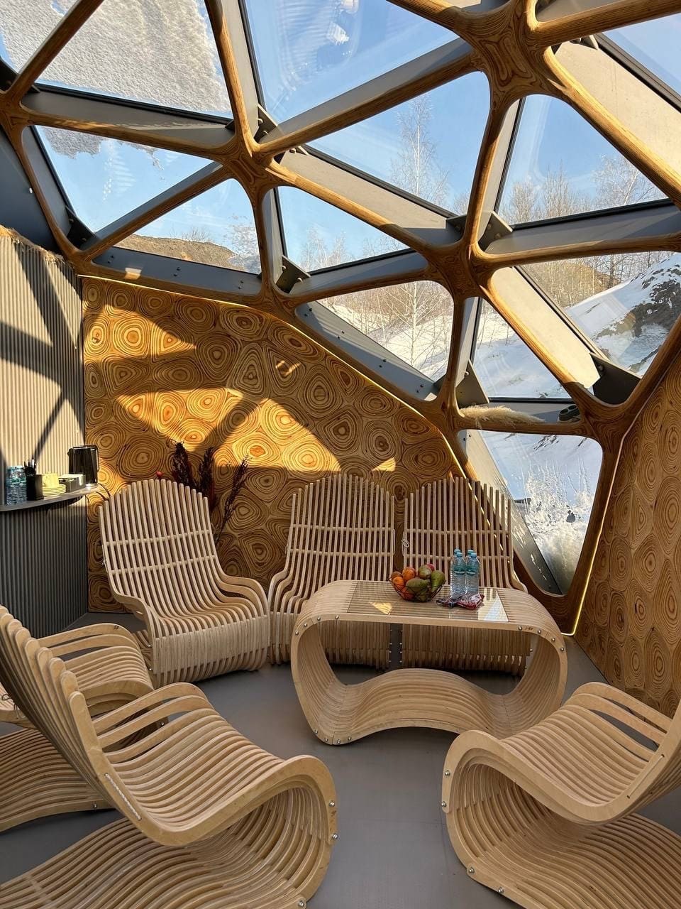 Проведите время в бане с прозрачным потолком, дизайн которой разработала нейросеть, а внутри все управляется с мобильного телефона. Вам остается только расслабиться и получать удовольствие от парения, прекрасных видов и интерьера.
