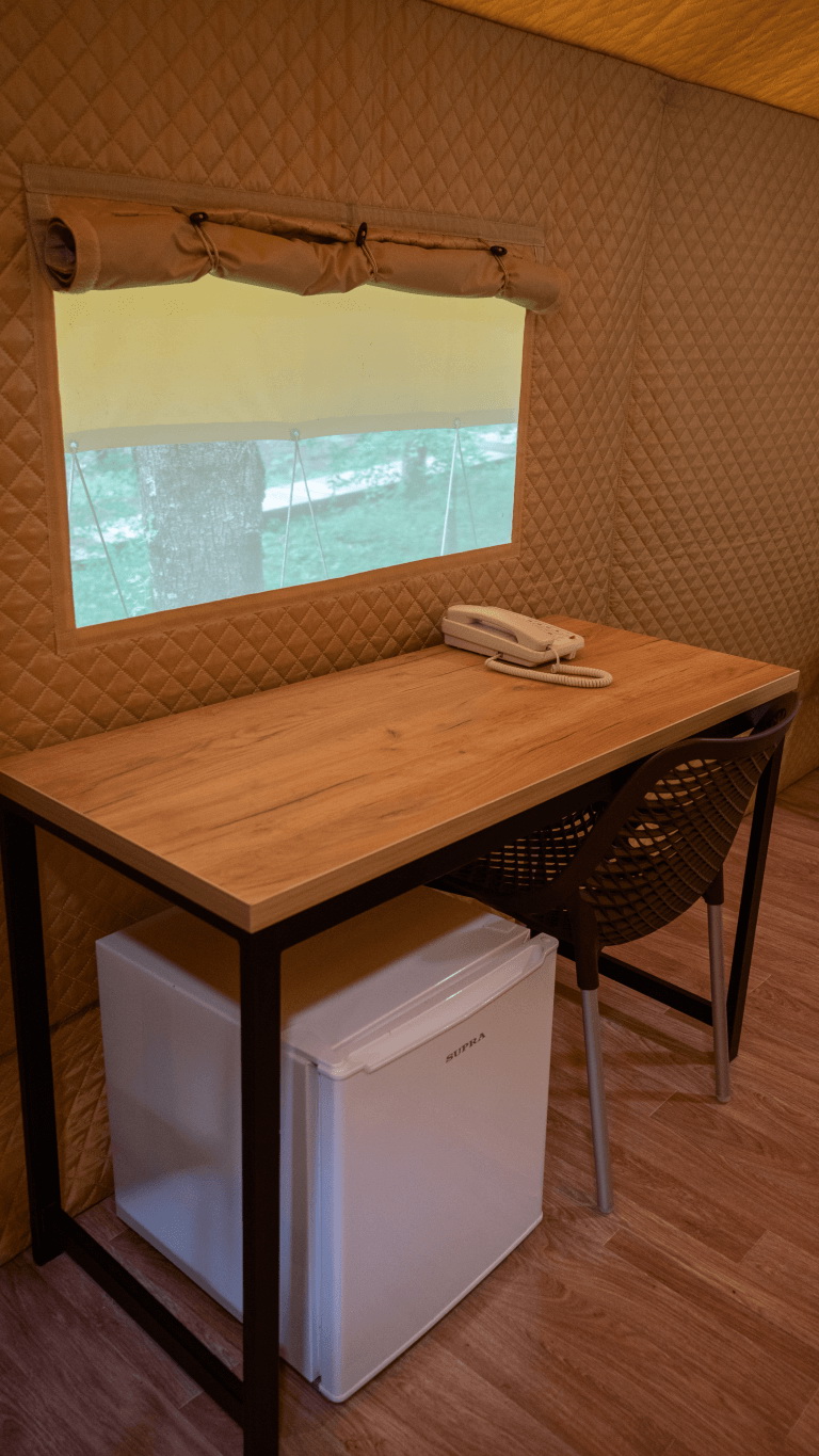 В номерах: Холодильник, телевизор. Оснащение зависит от выбранной категории номера.