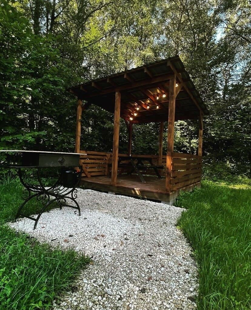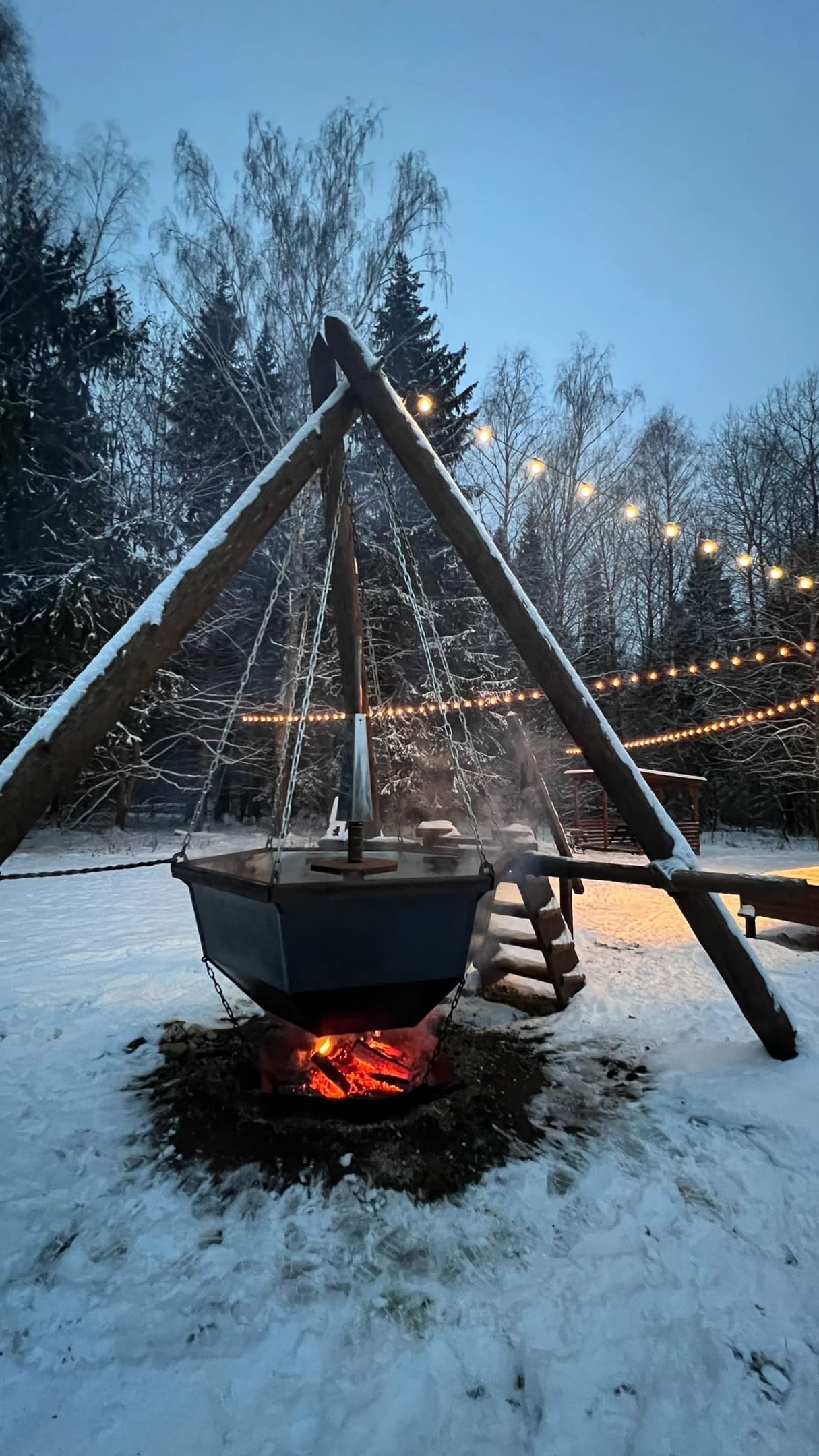 Здесь можно пожарить овощи и мясо на мангале, прогуляться по живописному лесу, поиграть в настольные игры, а так же расслабиться в настоящем сибирском чане с травами под открытым небом при любой погоде.