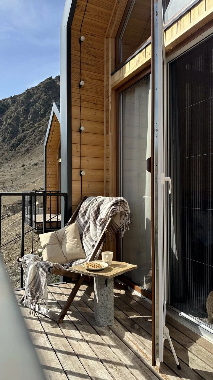 Стильные просторные коттеджи в стиле барнхаус, внутри которых есть все для комфортного пребывания, расположены на высоте 1500 метров. Из панорамных окон глэмпинга Chilli Bro’s camp открывается шикарный вид на снежные вершины, башни и величественные скалы. Наслаждаться пейзажами можно не только из домиков, но также из беседок и качелей.