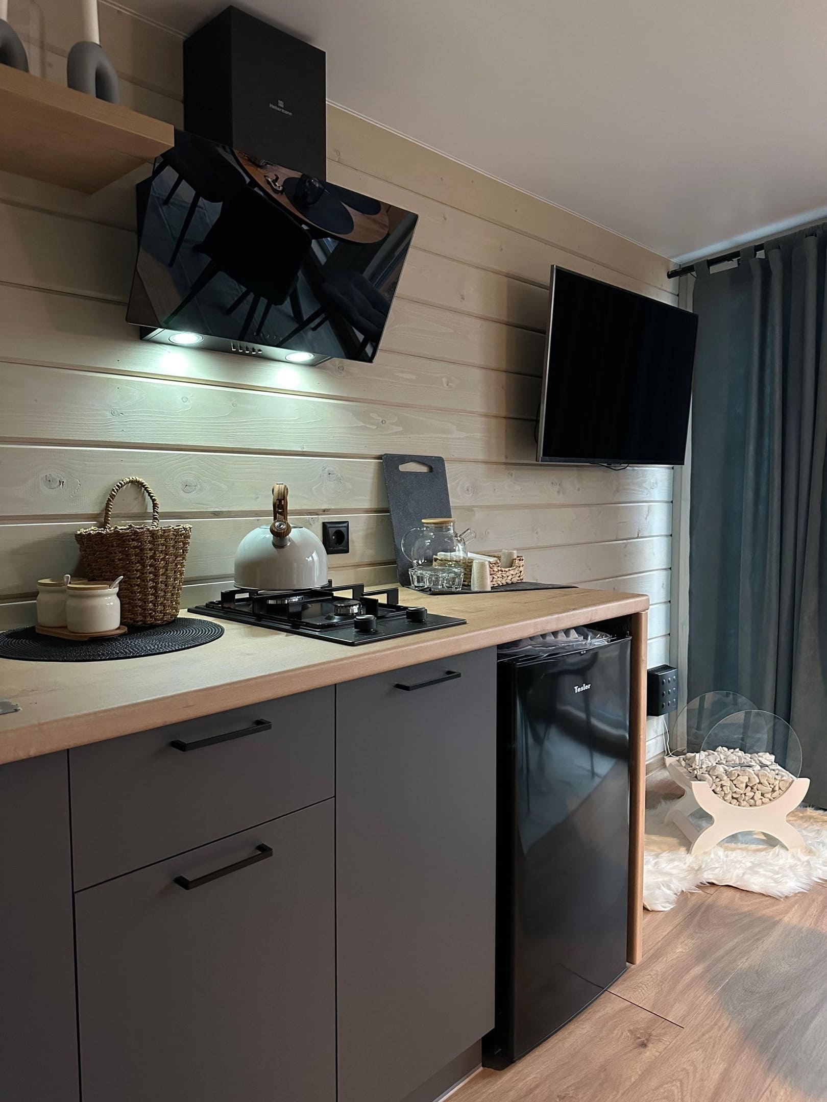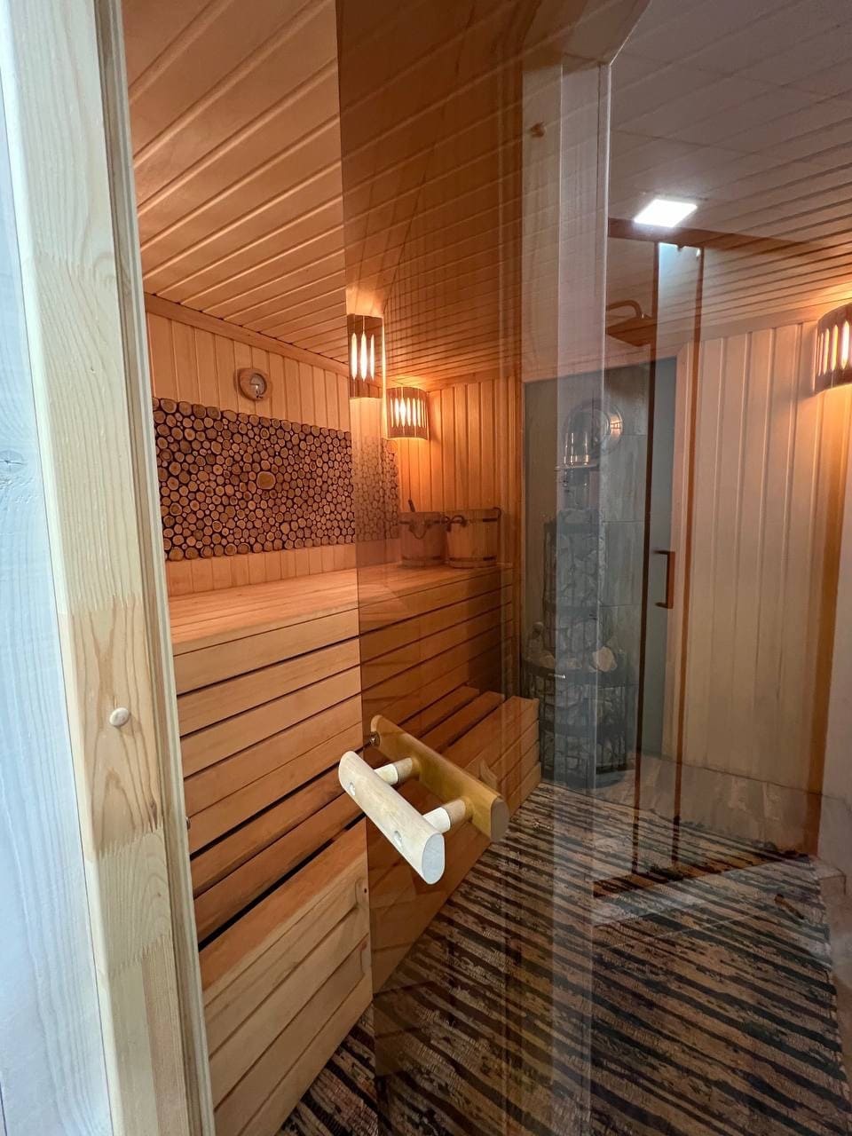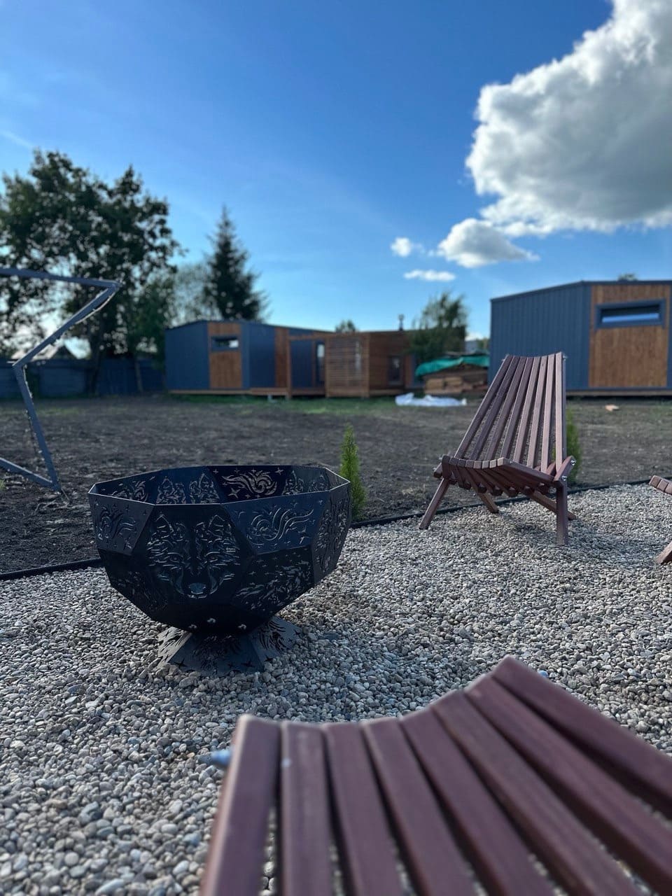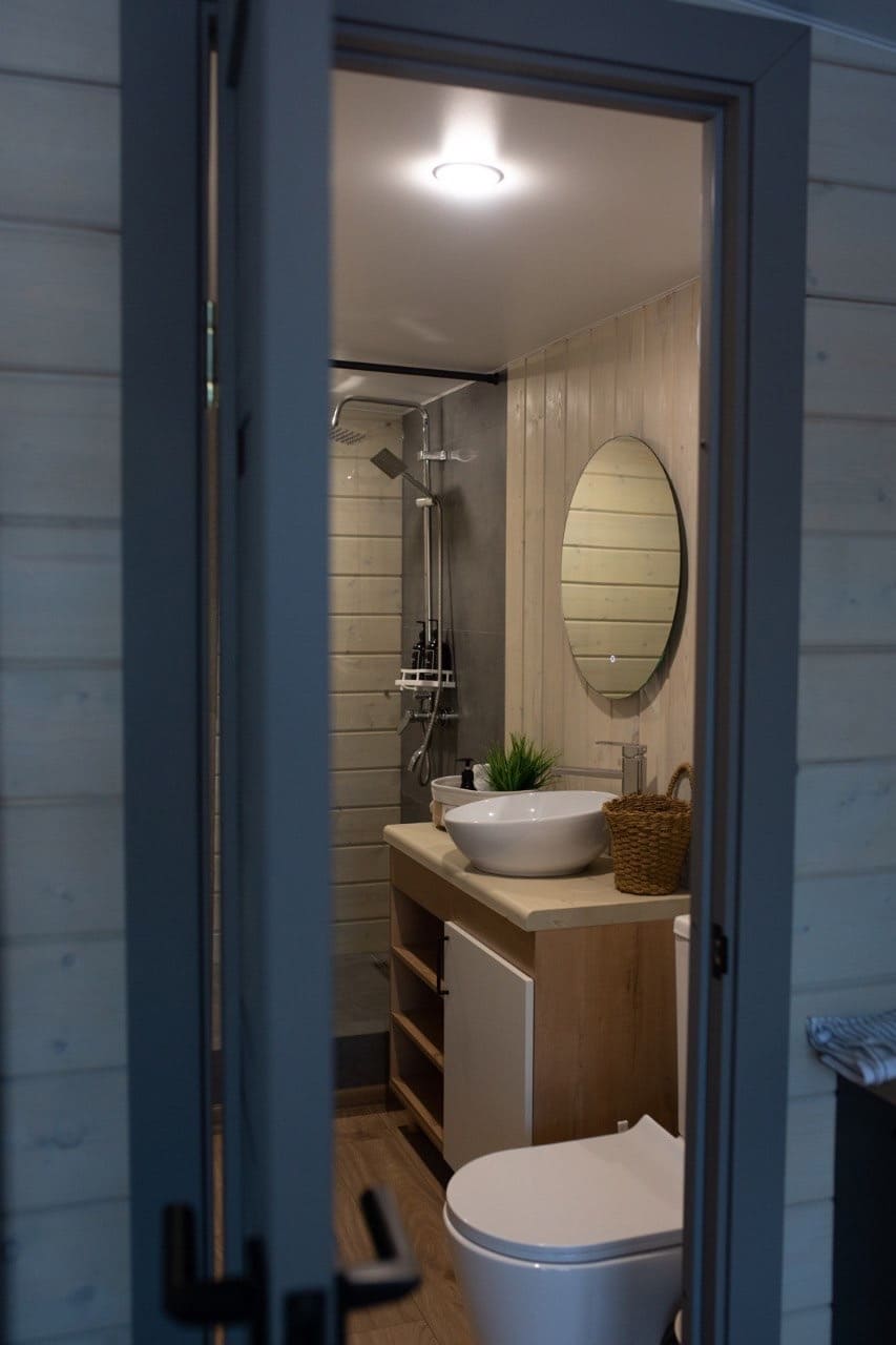 К каждому дому глэмпинга Дыхание примыкает теплая банька, а в 2 м на территории банного комплекса расположился любимчик гостей – подогреваемый сибирский чан под открытым небом.