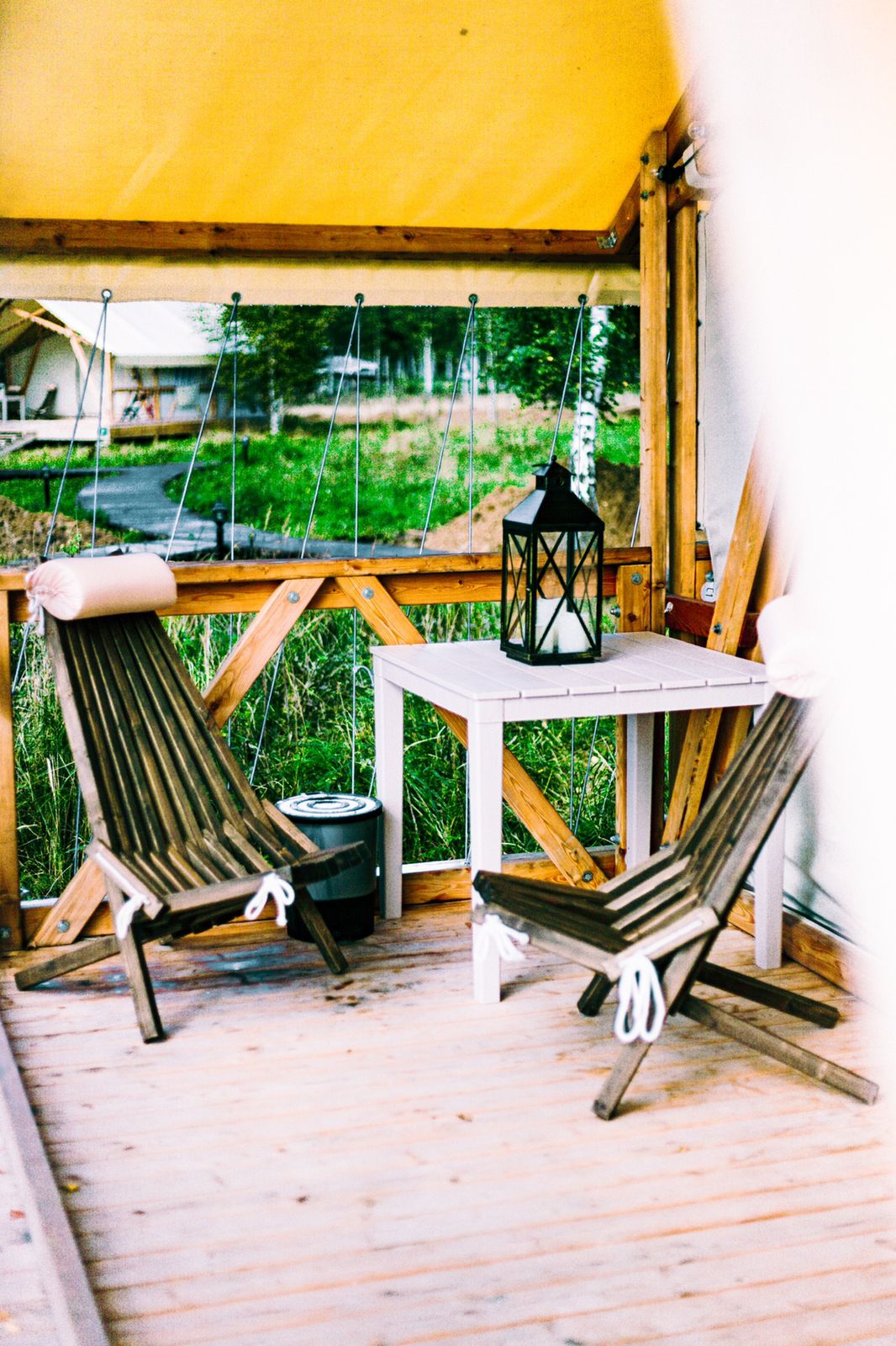 Стильный и современный сафари-тент с уютной верандой «Лисья нора».