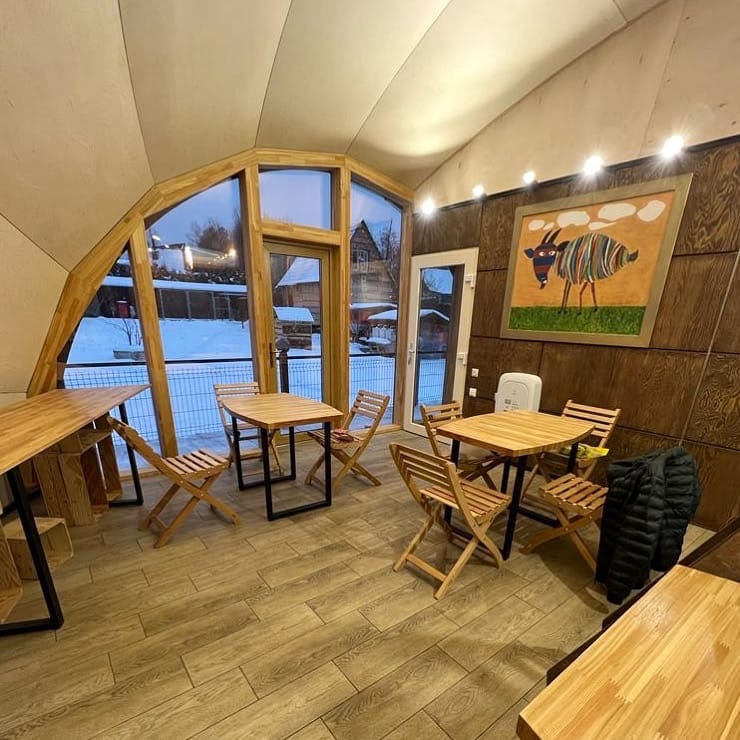 Особенность глэмпинга - настоящая ферма, где гости могут познакомиться и подружиться с животными элитных пород. Нубийские козы, зааненские козы и кролики очень контактны и всегда рады гостям! Здесь также производится гастрономическая ремесленная продукция - парное молоко, нежный творог, ароматные сыры и масло для настоящих ценителей. Всё можно продегустировать и, при желании, приобрести.