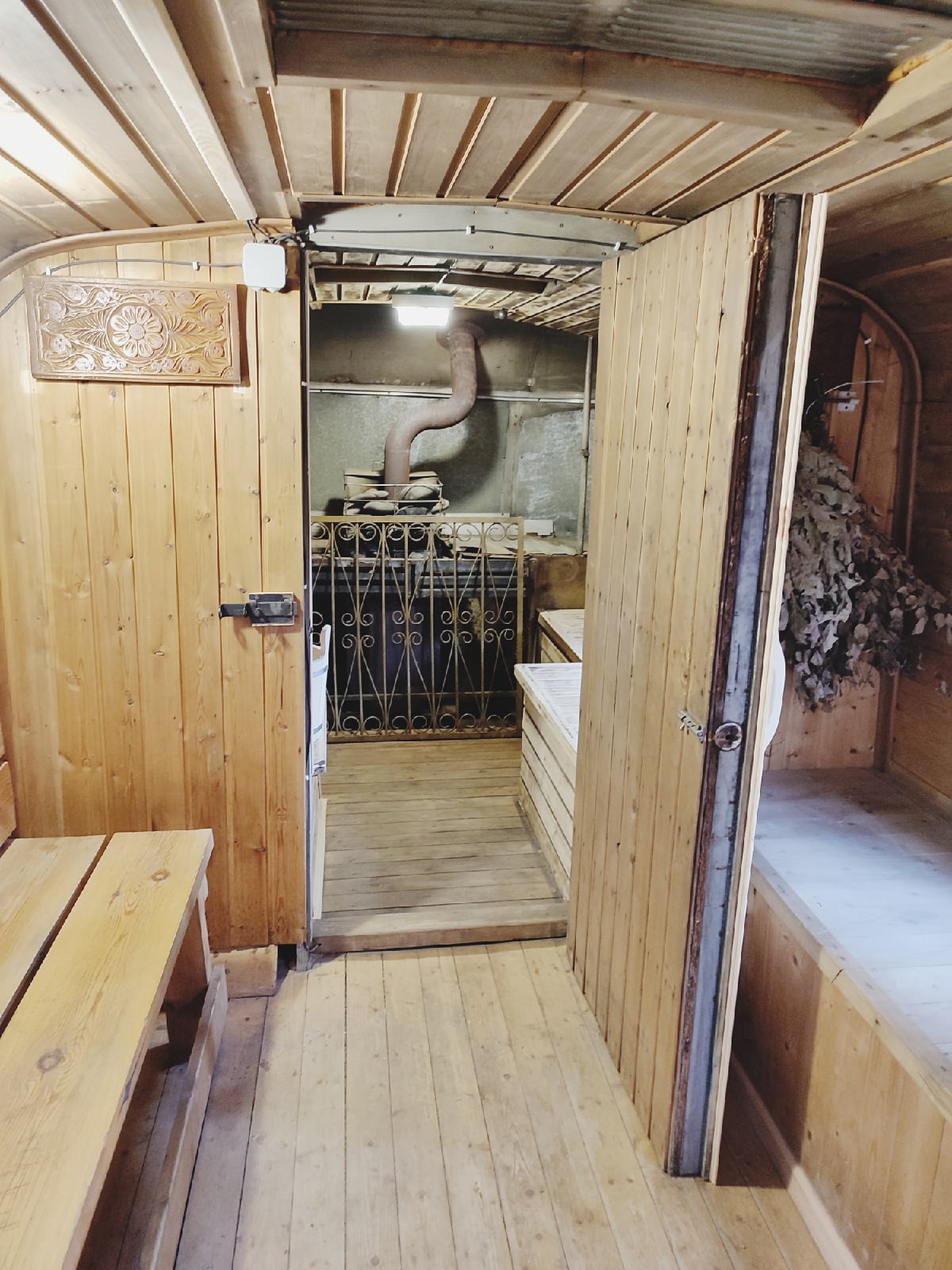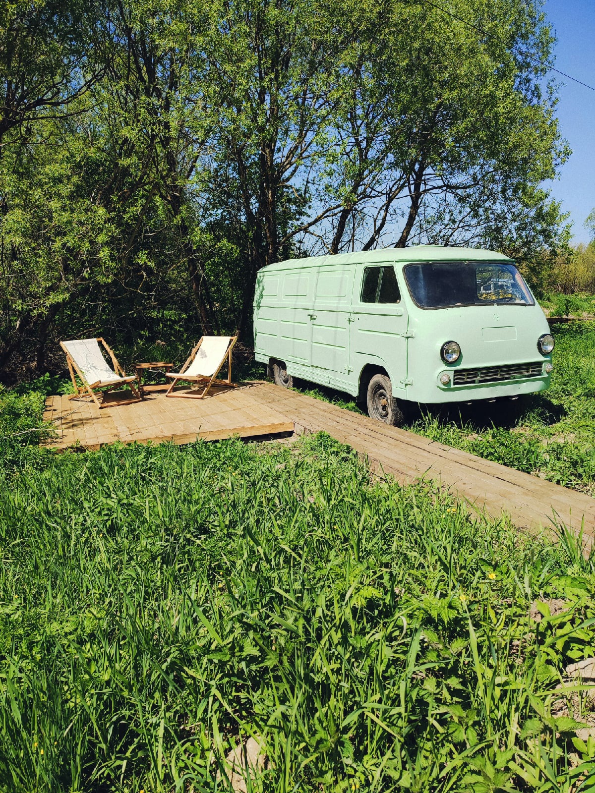 Наша баня сделана на базе редкого автобуса ПАЗ-672.