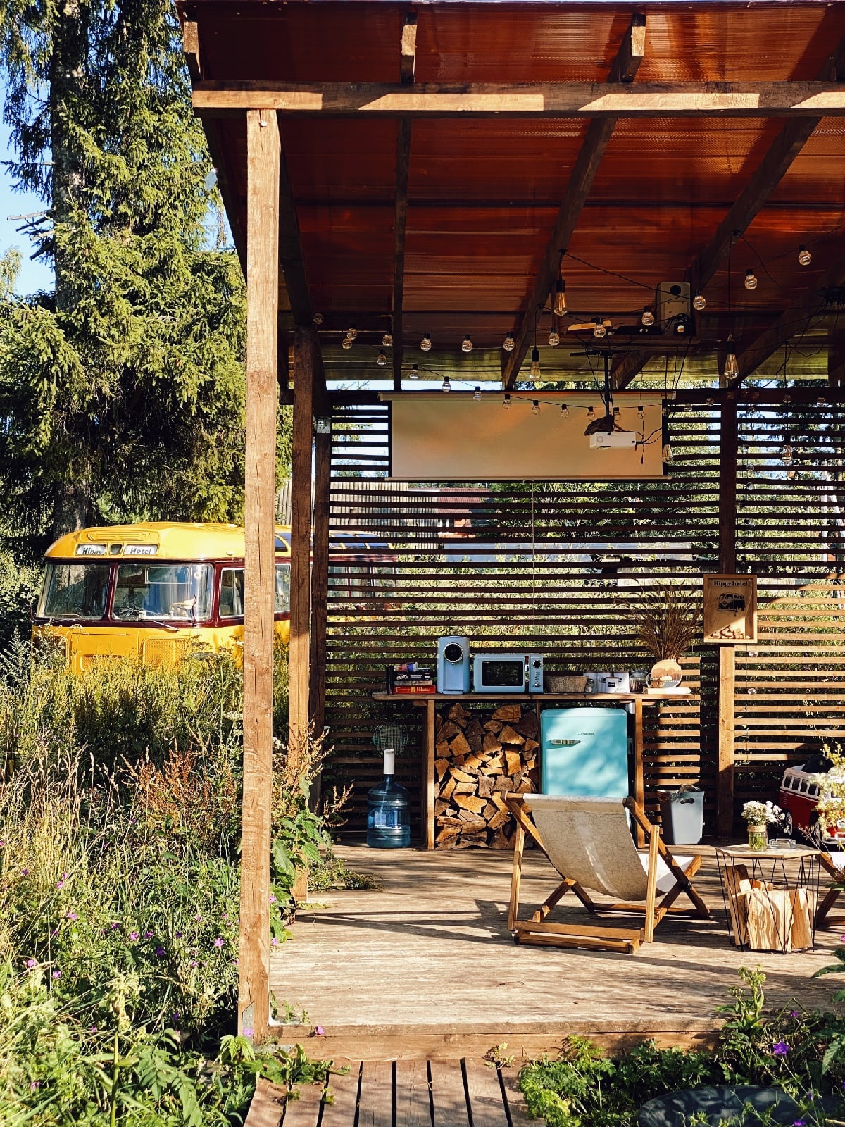 Рядом с каждым автобусом есть мангальная зона, она входит в стоимость проживания.