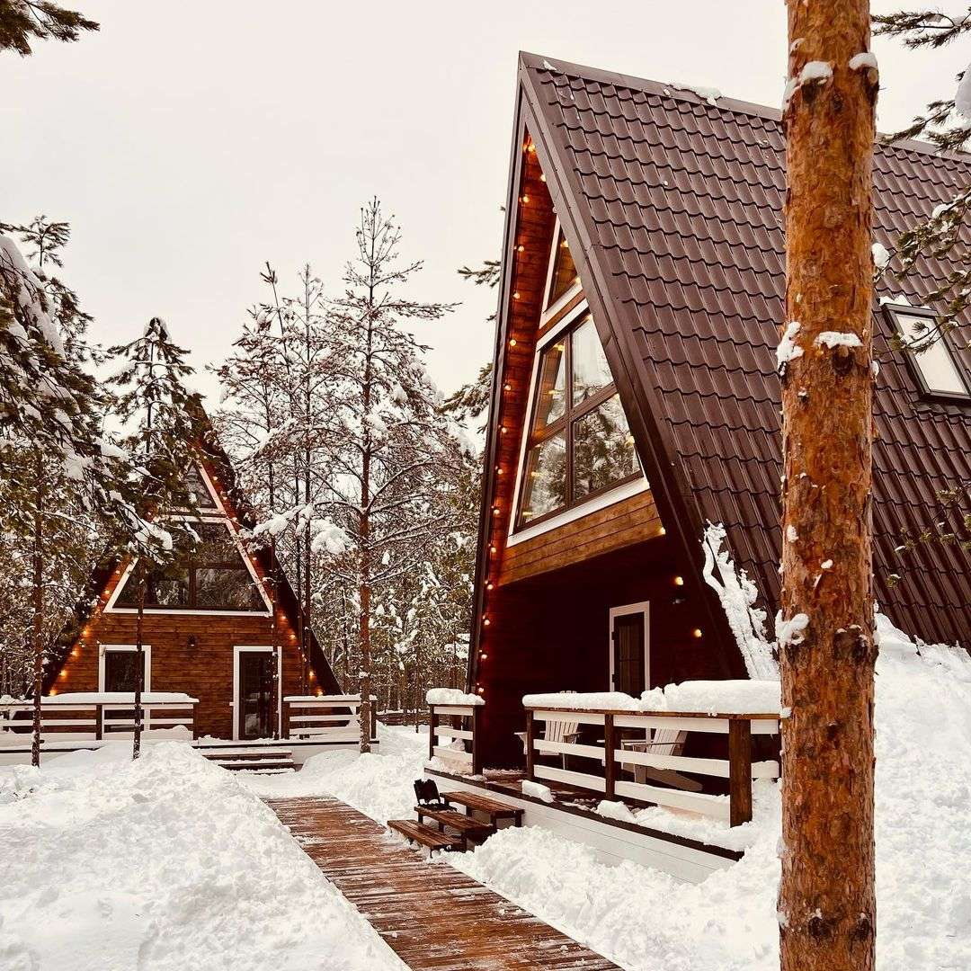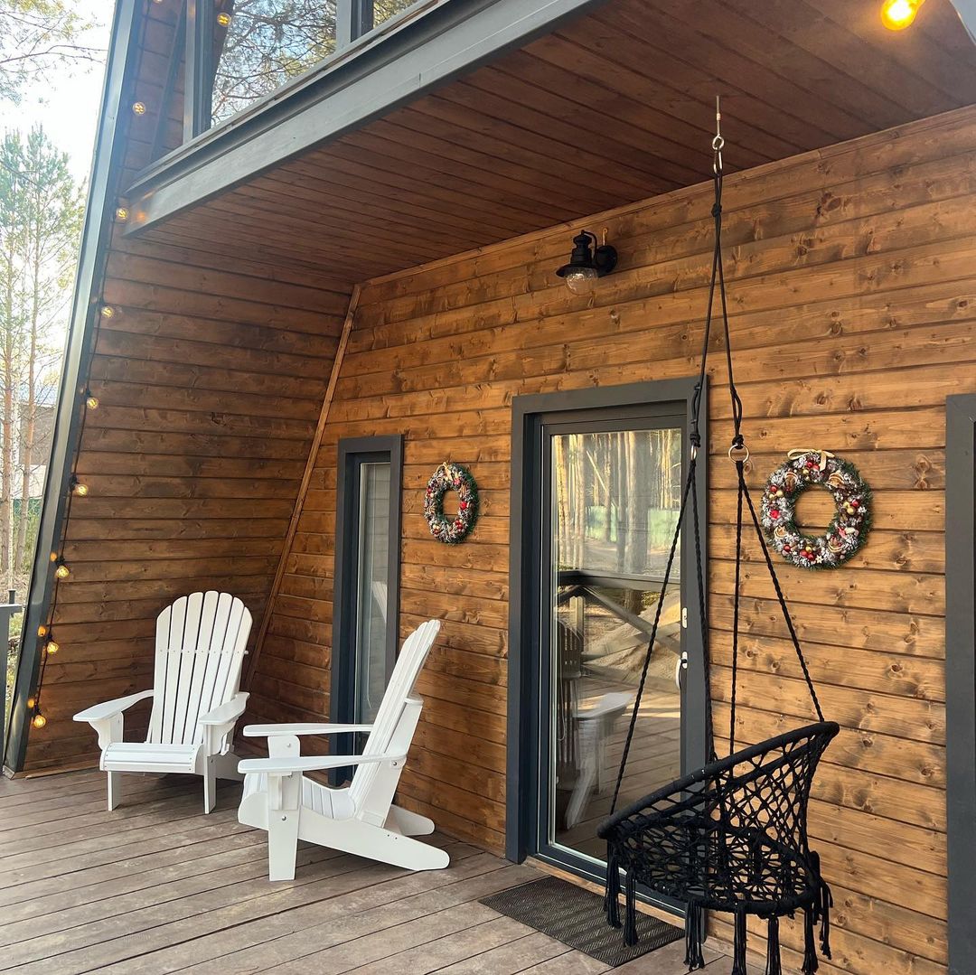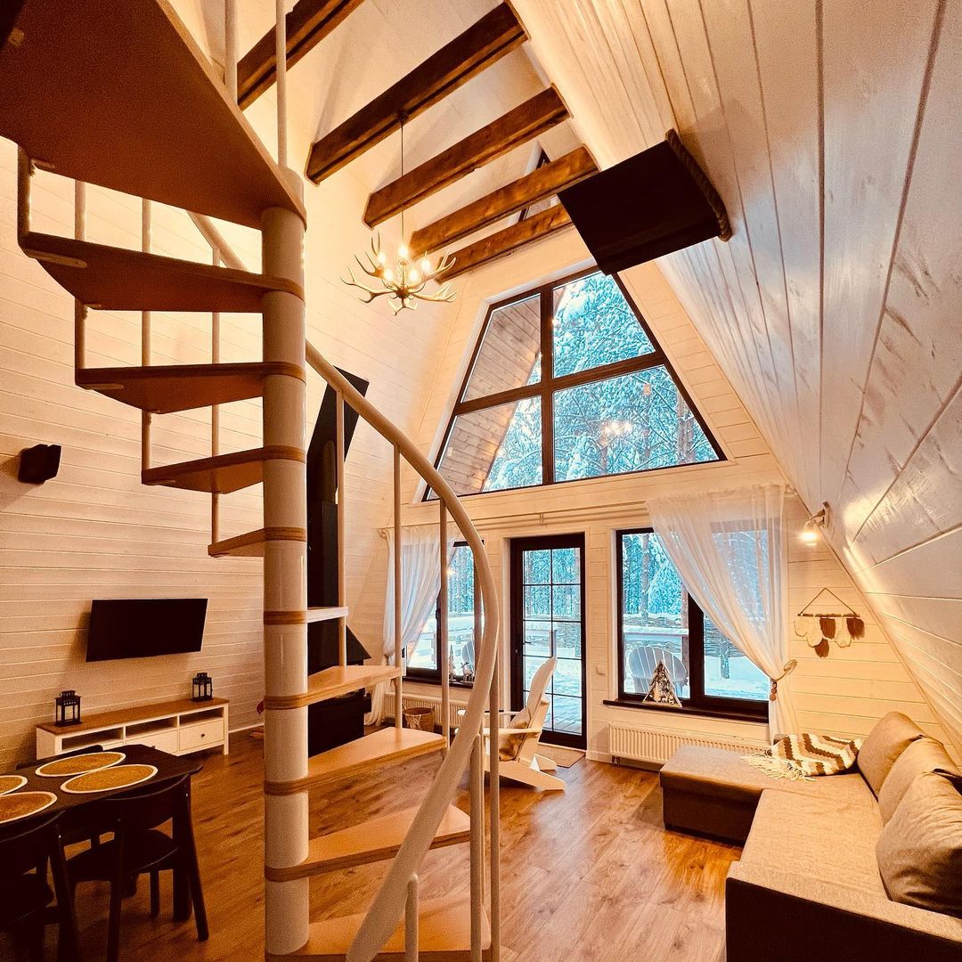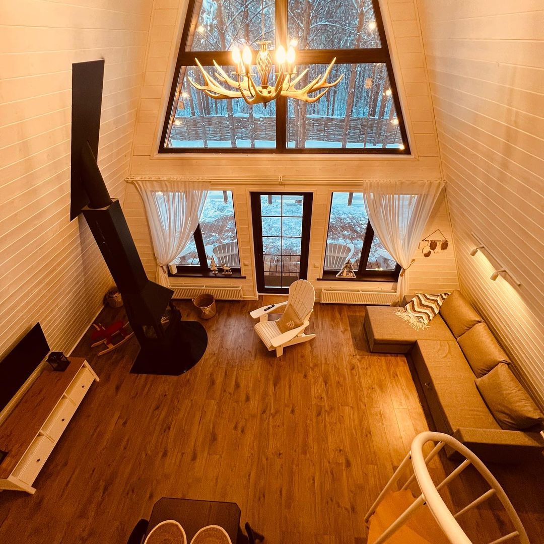 На территории Хутор Залесье в Переславле-Залесском расположились шикарные треугольные дома, в которых хозяева поместили все, что нужно для вашего комфортного отдыха – от Wi-Fi до посудомоечной машины. Возле некоторых домиков расположена атмосферная банька.