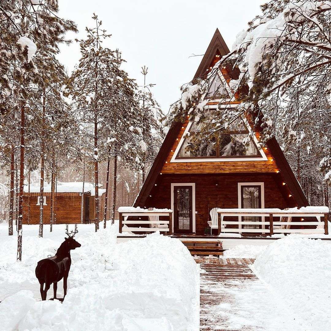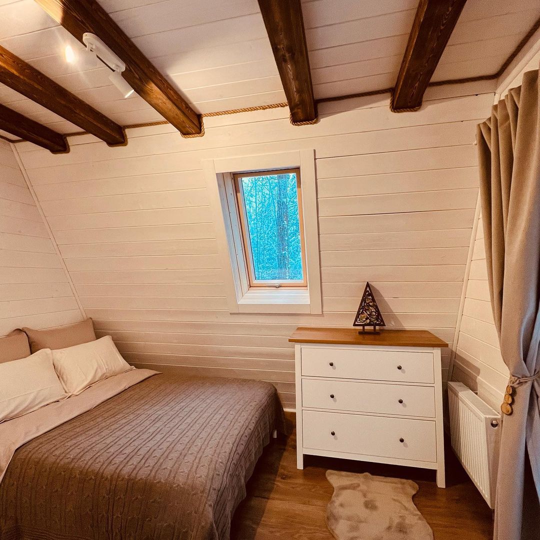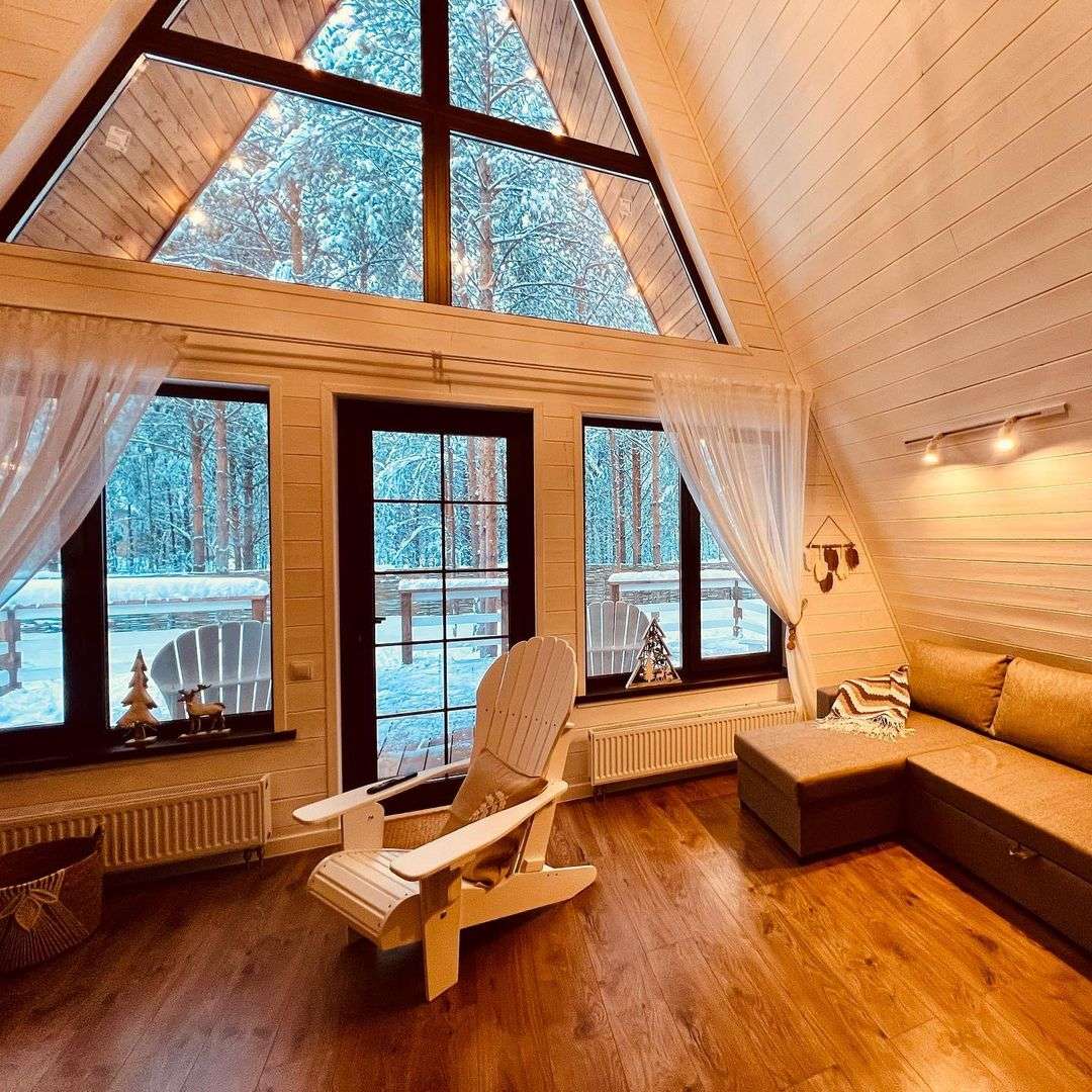 На территории Хутор Залесье в Переславле-Залесском расположились шикарные треугольные дома, в которых хозяева поместили все, что нужно для вашего комфортного отдыха – от Wi-Fi до посудомоечной машины. Возле некоторых домиков расположена атмосферная банька.