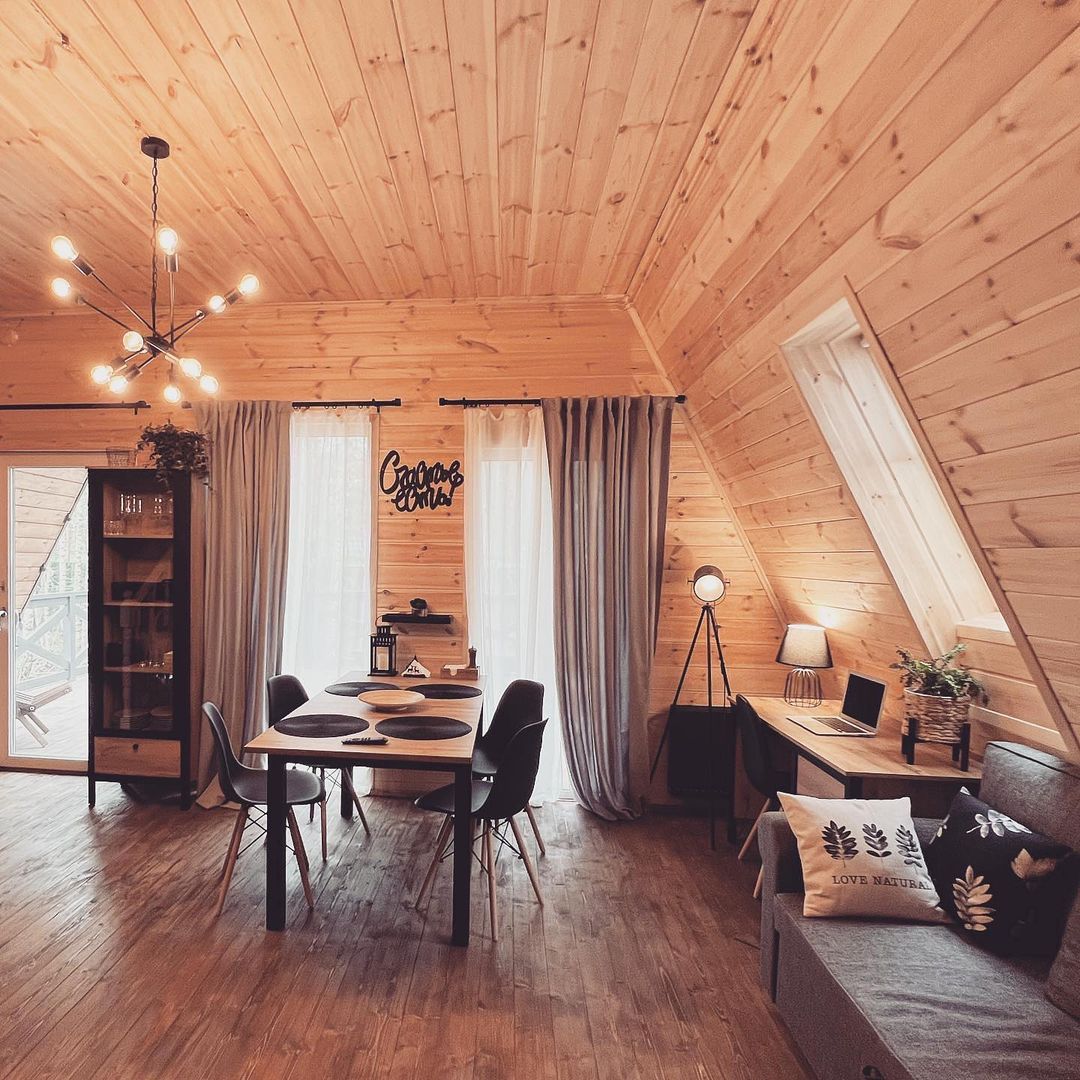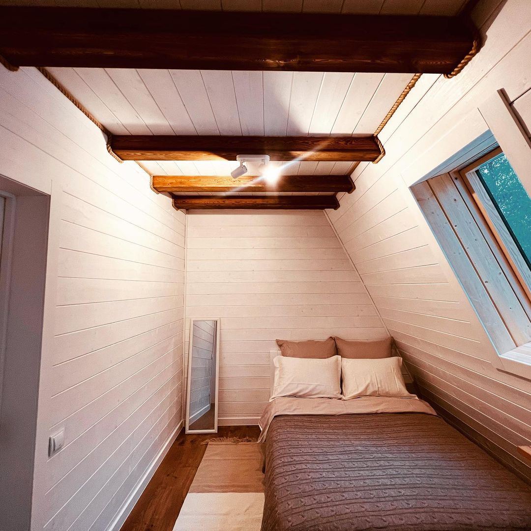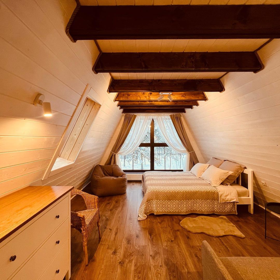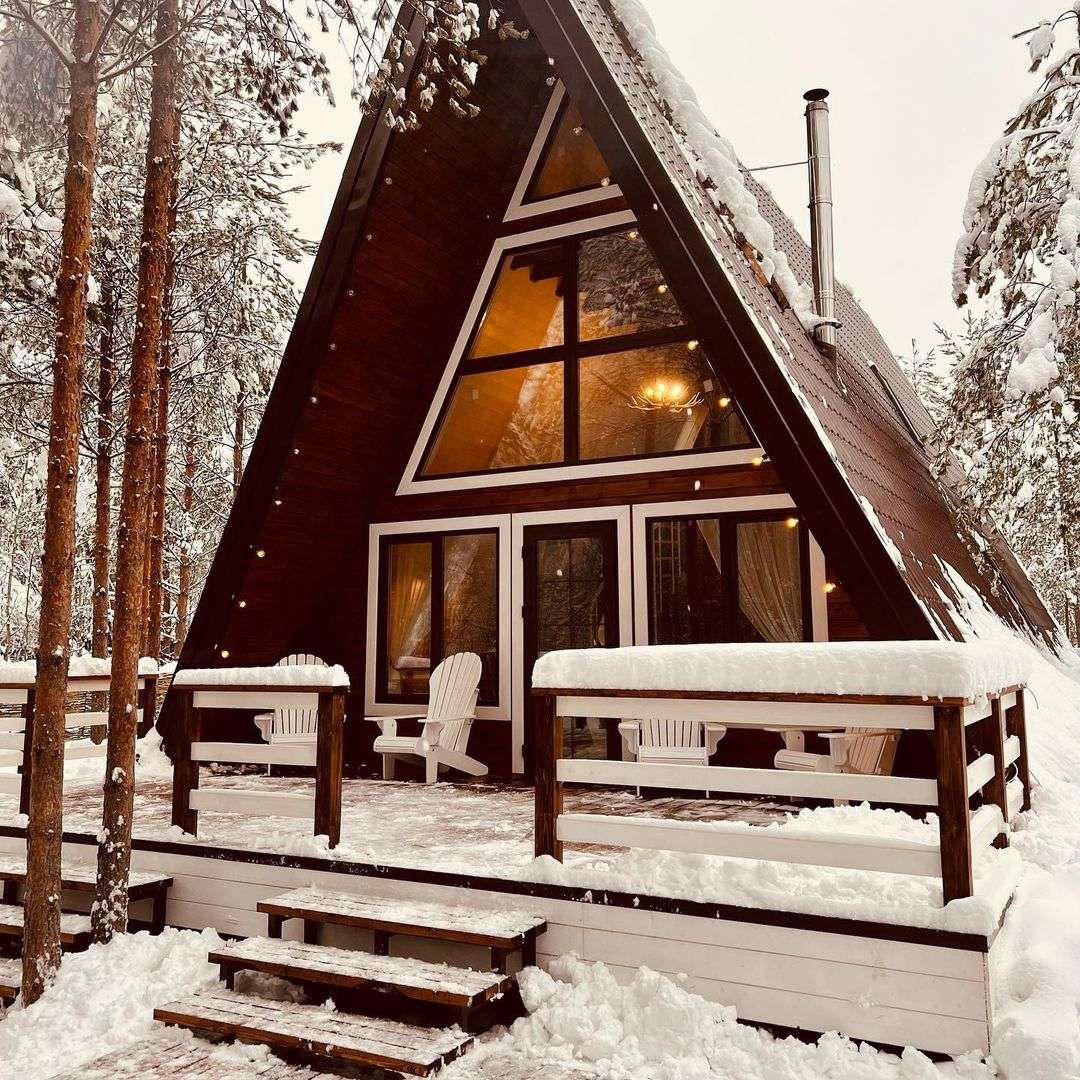 На территории Хутор Залесье в Переславле-Залесском расположились шикарные треугольные дома, в которых хозяева поместили все, что нужно для вашего комфортного отдыха – от Wi-Fi до посудомоечной машины. Возле некоторых домиков расположена атмосферная банька.