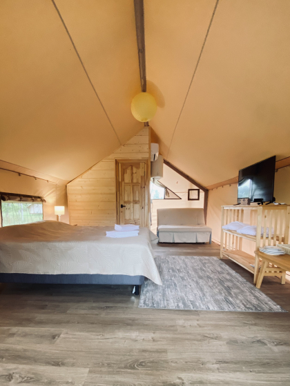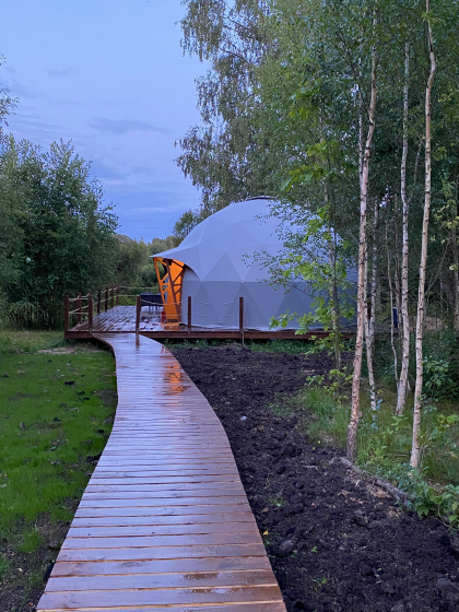 18 шатров и домов глэмпинга бережно и органично вписаны в природный ландшафт Пушкинских гор.