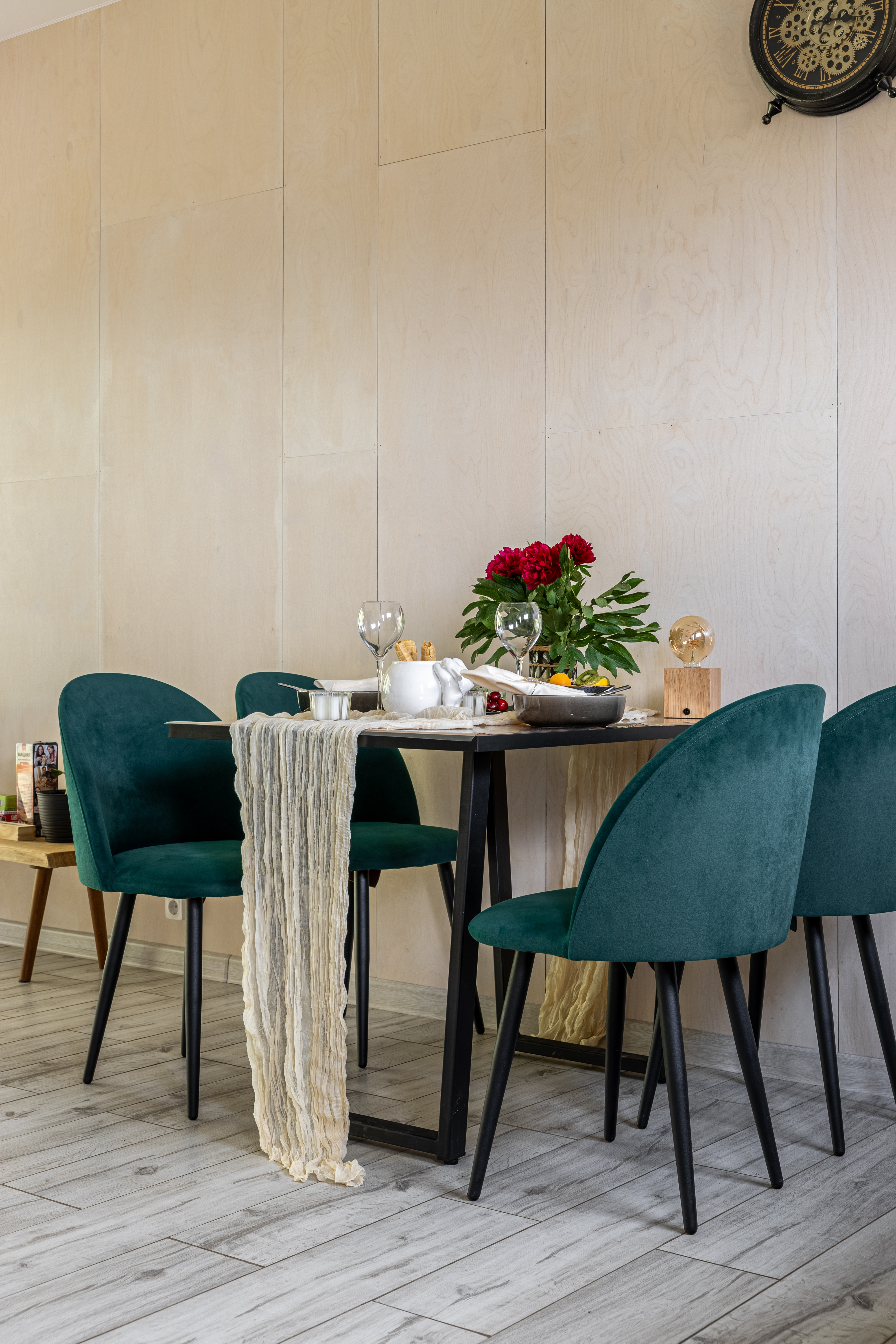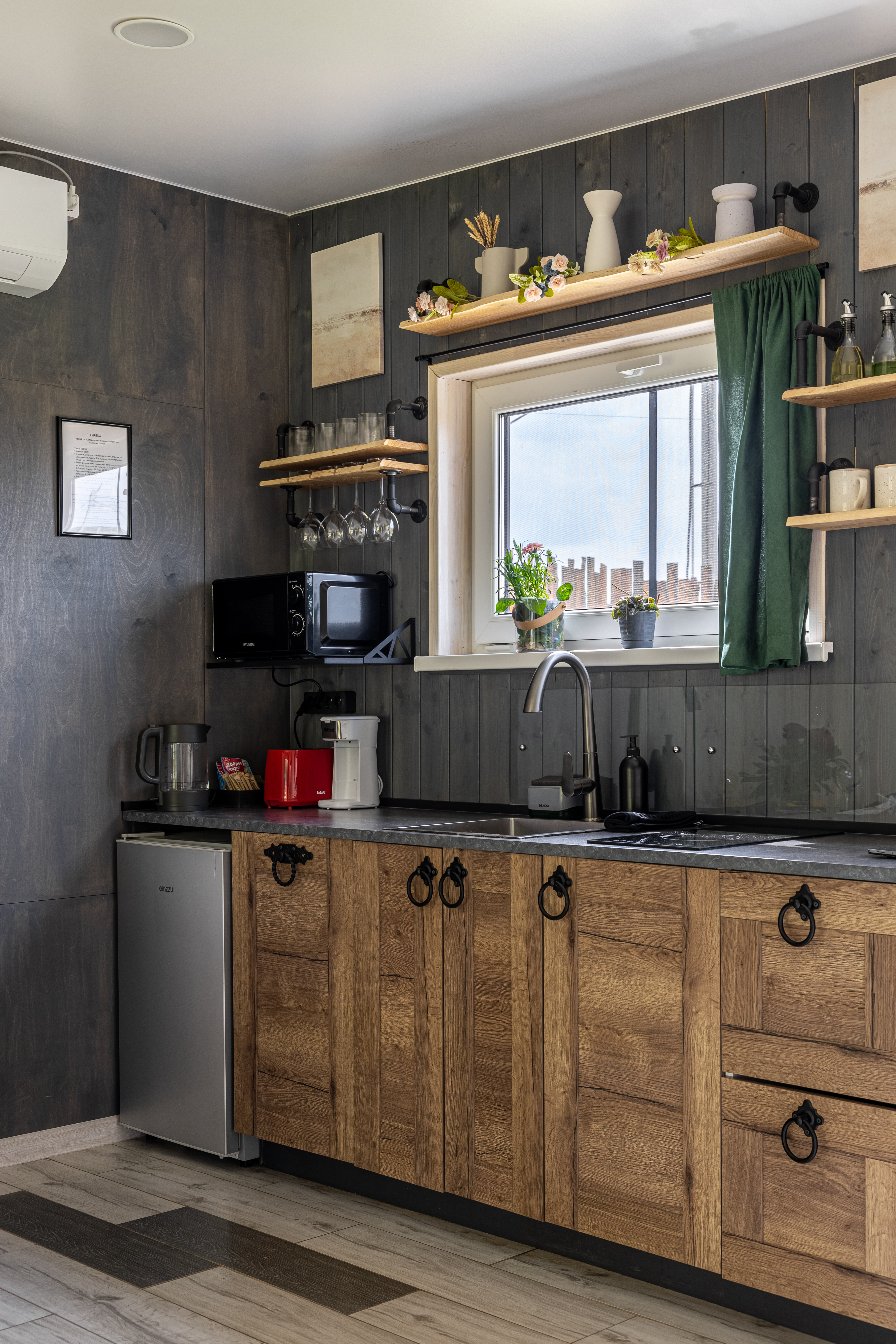 - Кухня гостиная с раскладным диваном, проектором, кондиционером и виниловым проигрывателем.