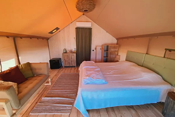 В нашем глэмпинге 10 номеров, каждый из которых - видовой, с прекрасной панорамой горной долины. Есть все, что нужно для комфортного пребывания и сна.