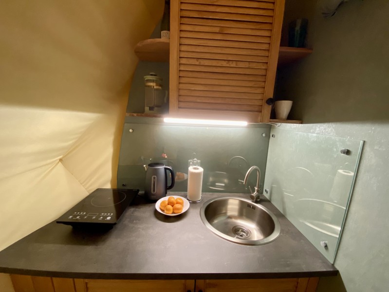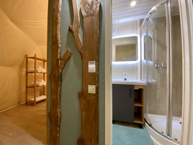 - Терраса из натуральной лиственницы, лаунж зона, мангальная зона и детская площадка на территории Глэмпинг парка!