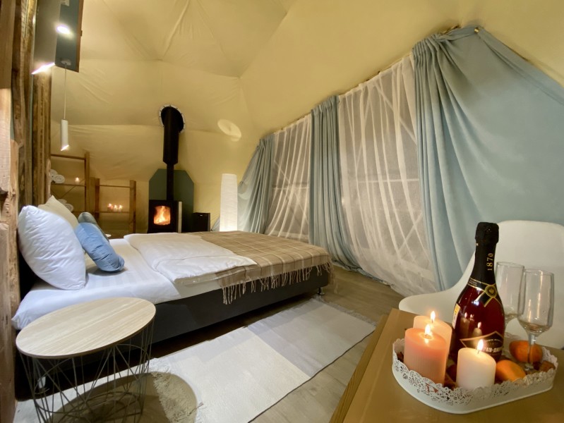 Множество лесных троп и направлений позволит насладиться зимним лесом во всей красе, а по возращению в наш Глэмпинг, мы предложим просушить верхнюю одежду в специально отведенном для этого месте.