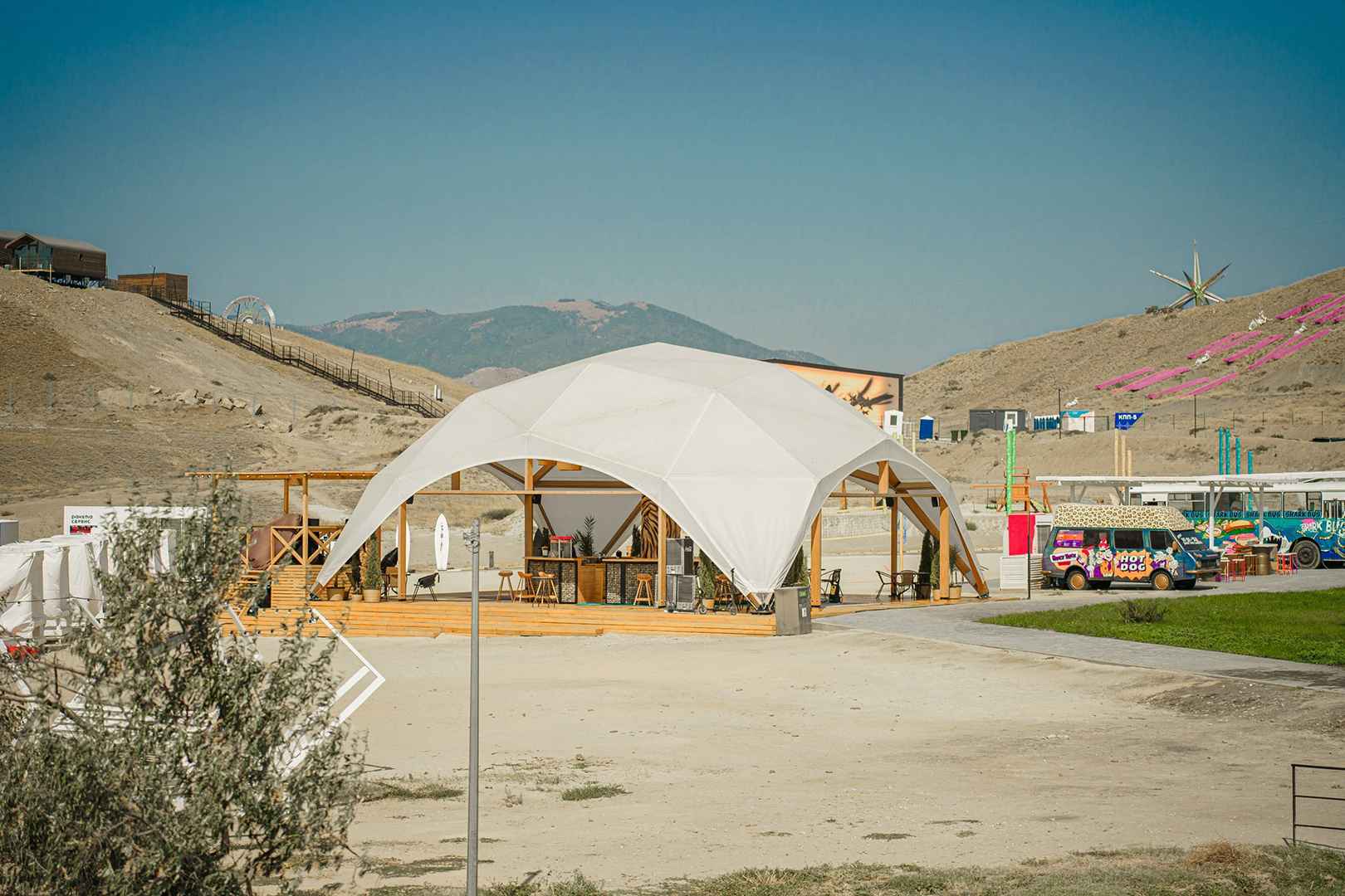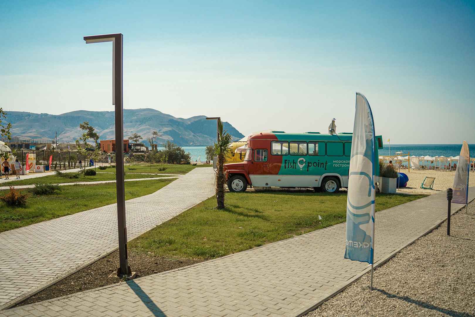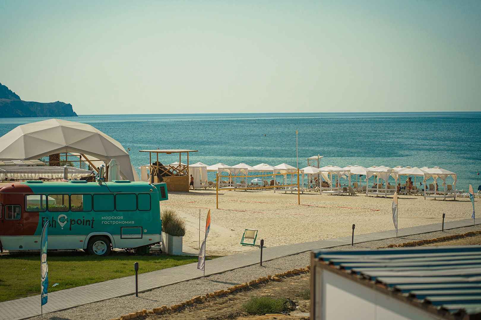 После активностей отдыхающие могут подкрепиться в трейлерах фудкорта, в которых каждый найдет себе блюдо по вкусу. Время от времени на пляже проходят концертные программы.