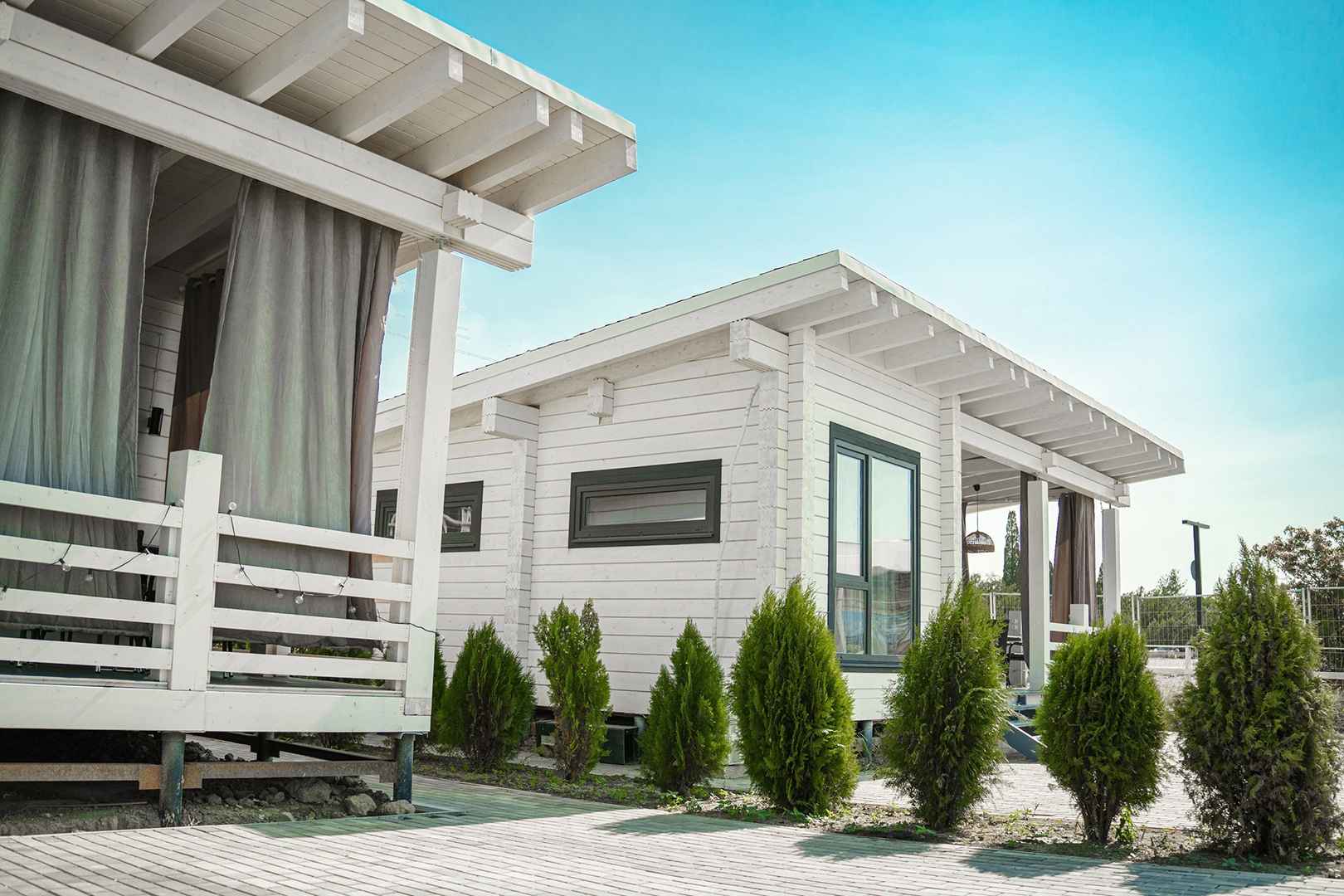 Для проживания в глэмпинге Пляж Ракета доступны просторные виллы со всеми необходимыми удобствами внутри, а также уютные кемпинг-домики, в которых можно отдохнуть более бюджетно, но по-прежнему в комфорте.