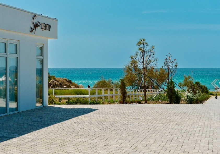 - На машине: введите в навигаторе «Пляж Ракета» или координаты 44.831182, 35.029618