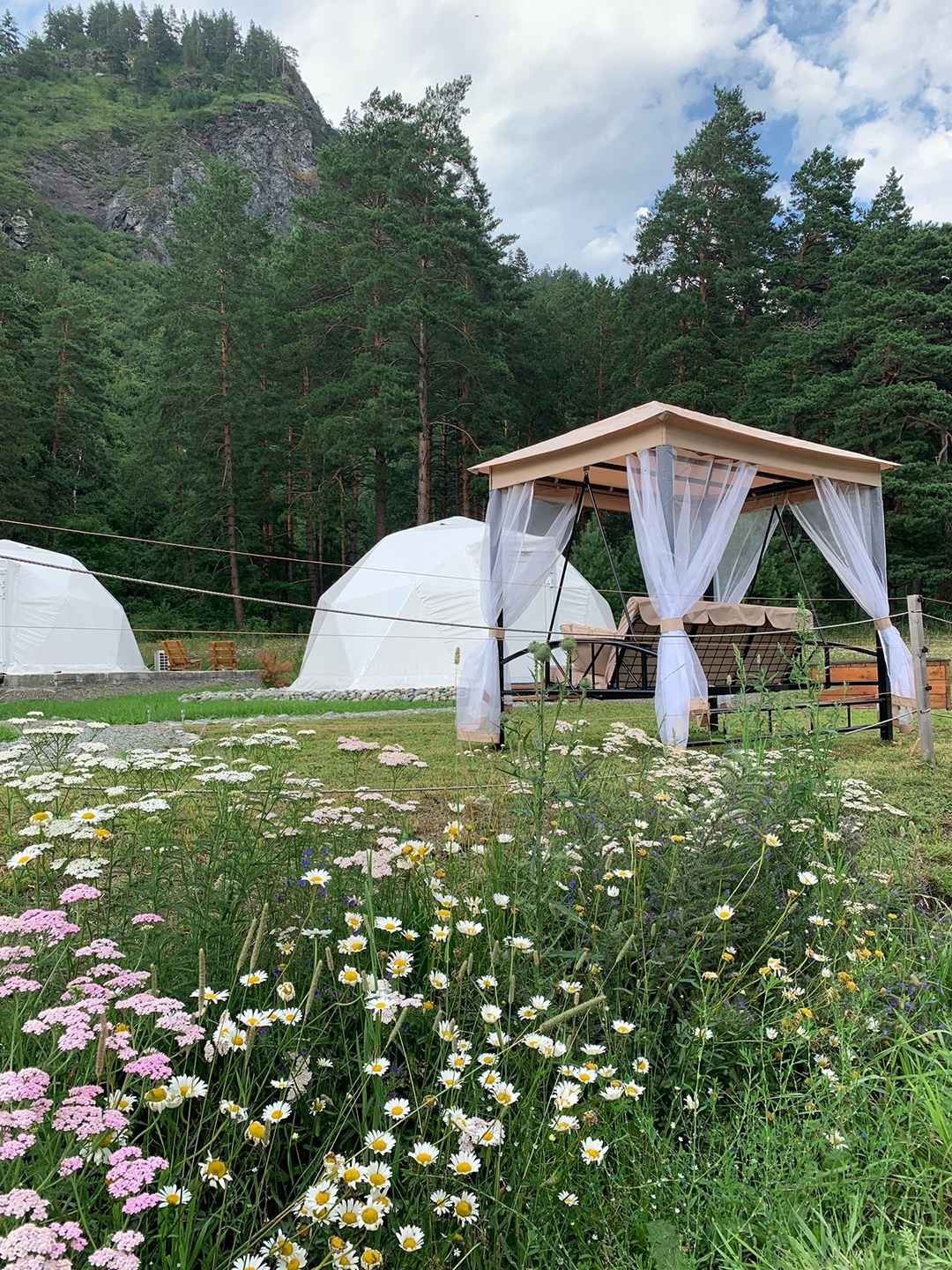 Подгорный – это глэмпинг, находящийся у подножия горы в селе Манжерок в республике Алтай, окруженный реликтовым лесом.
