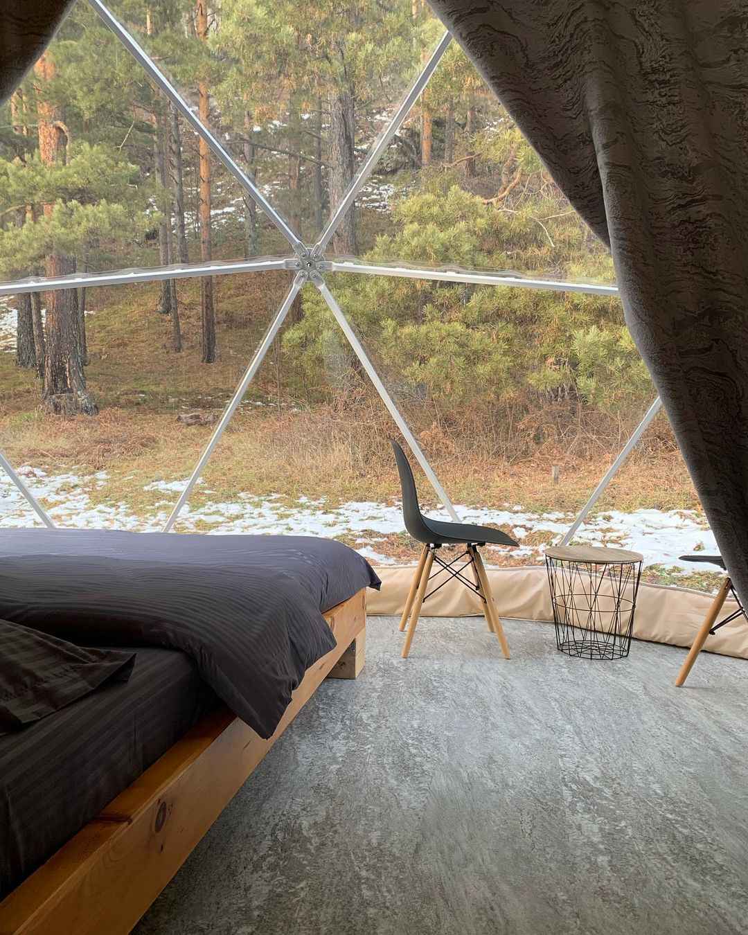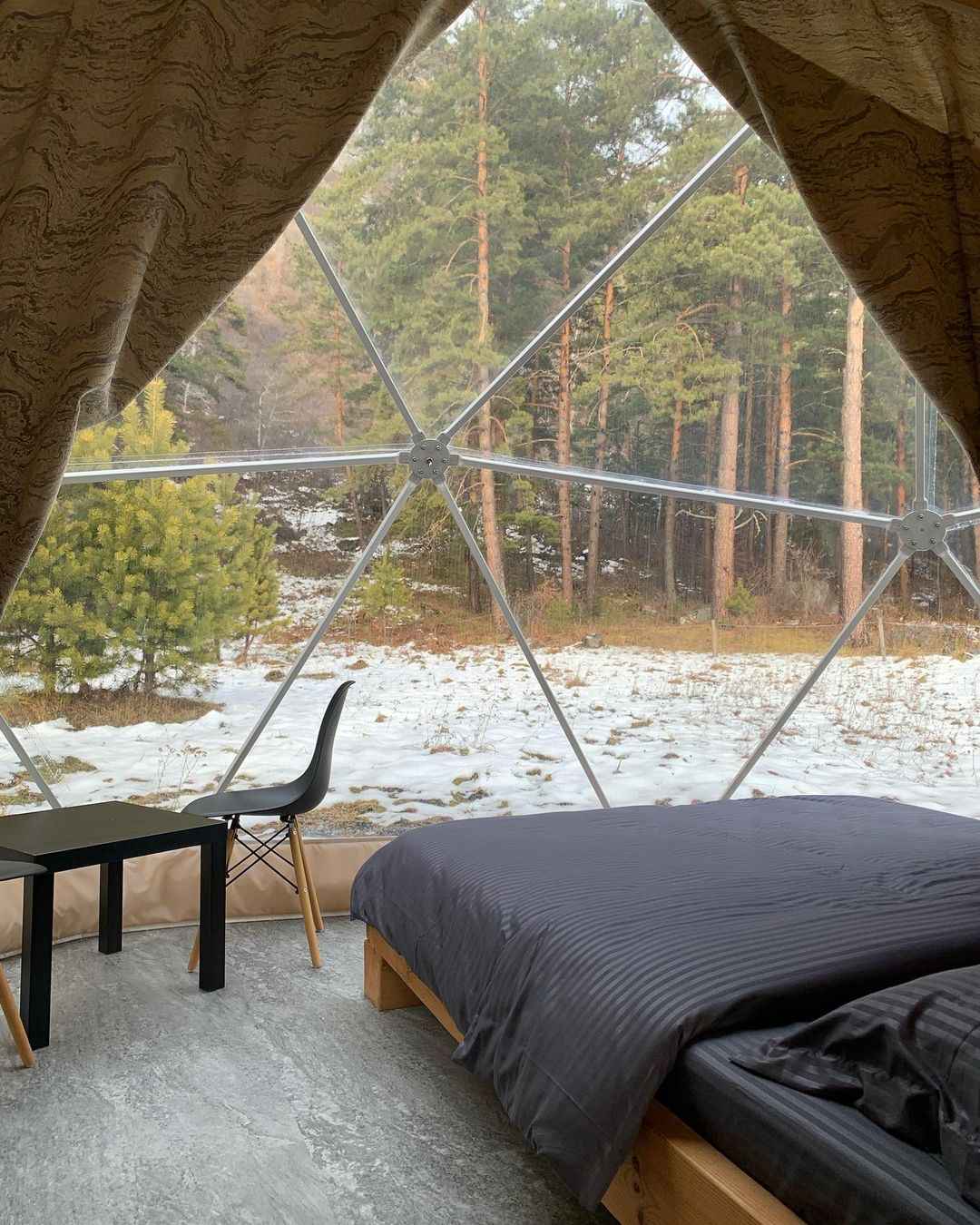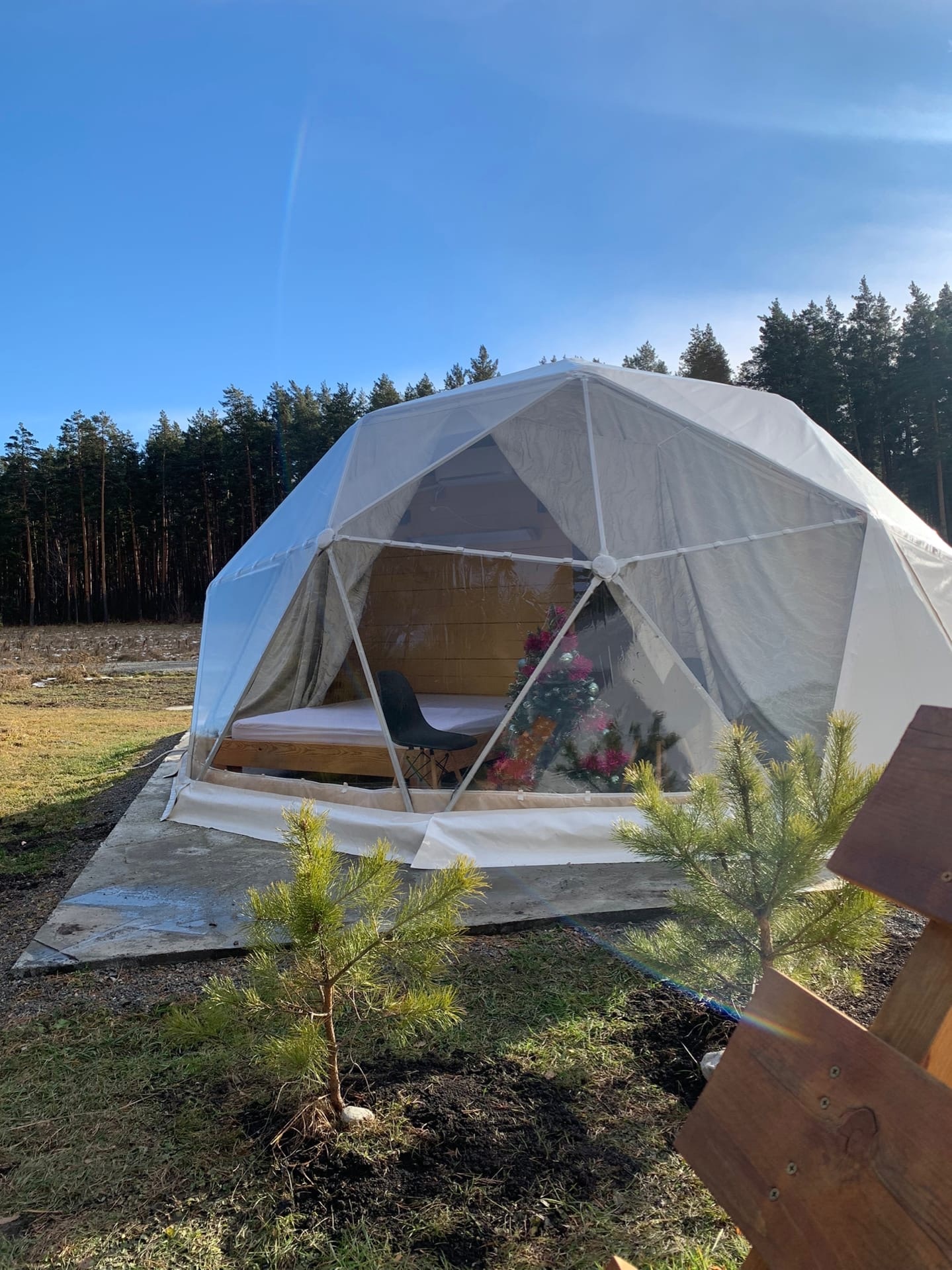 Четыре современных купола позволяют гостям глэмпинга Подгорный насладиться красотой живописной природы, не жертвуя при этом комфортом.