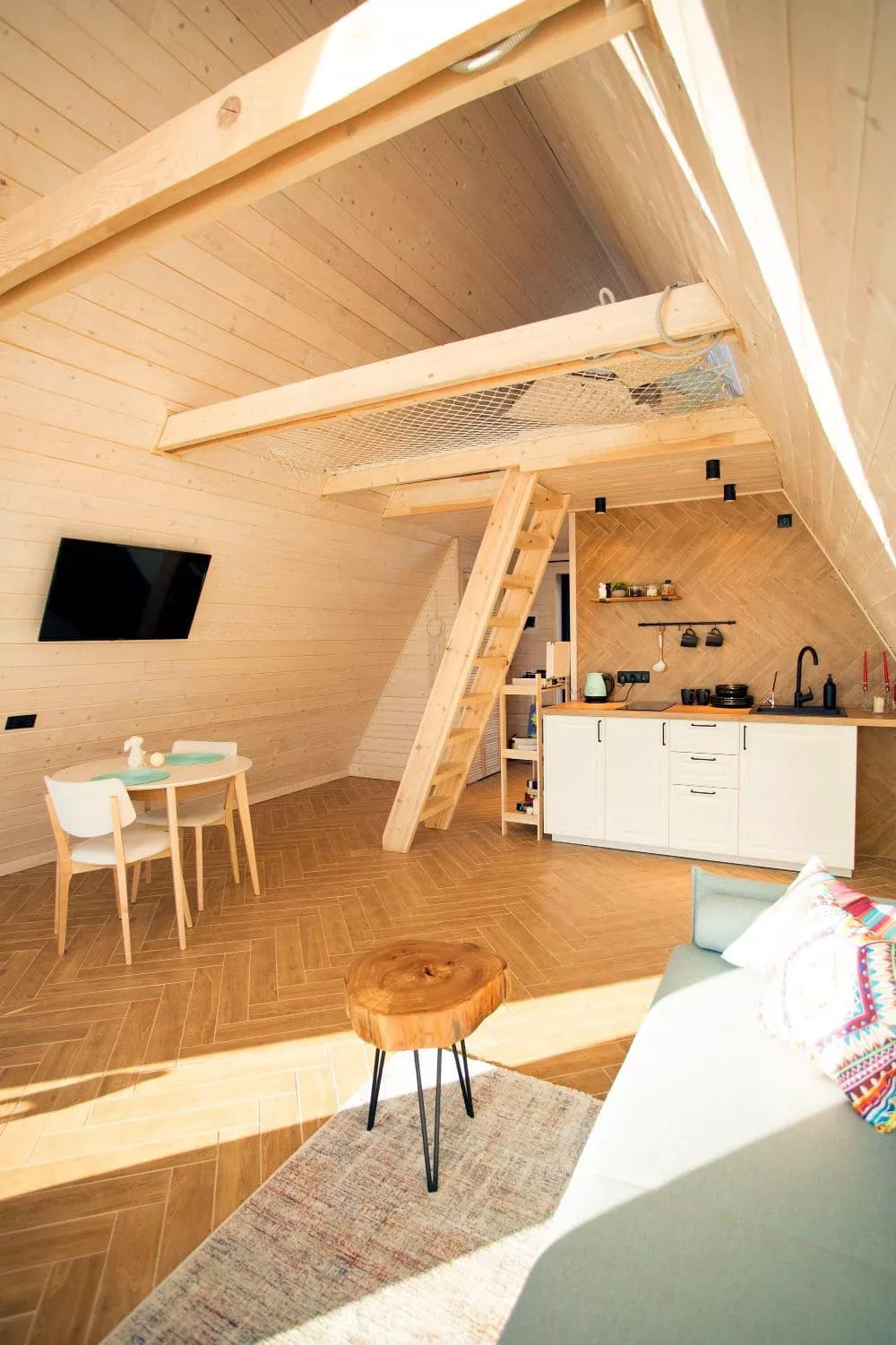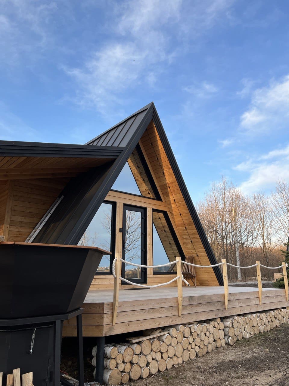 Глэмпинг Ривер в Нижнем Новгороде включает в себя 4 А-фрейм домика, выполненные из экологичных материалов.
