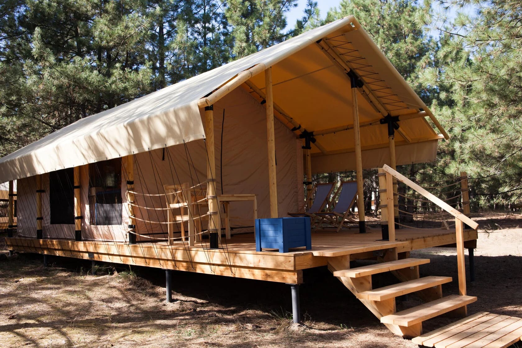 Глэмпинг Синий Яр включает в себя 14 комфортных сафари-тентов в окружении столетних сосен, чистого песка и уникальной природы. Вы можете приехать сюда в любое время года, так как на зиму шатры утепляются специальными «пуховиками». Поэтому после прогулки по зимнему лесу вы быстро сможете согреться. Но теплые носочки все-таки стоит взять. Летом же гостям доступно катание на сапборде, лодке, катере или вейкборде — выбирайте формат отдыха, который подарит незабываемые эмоции.