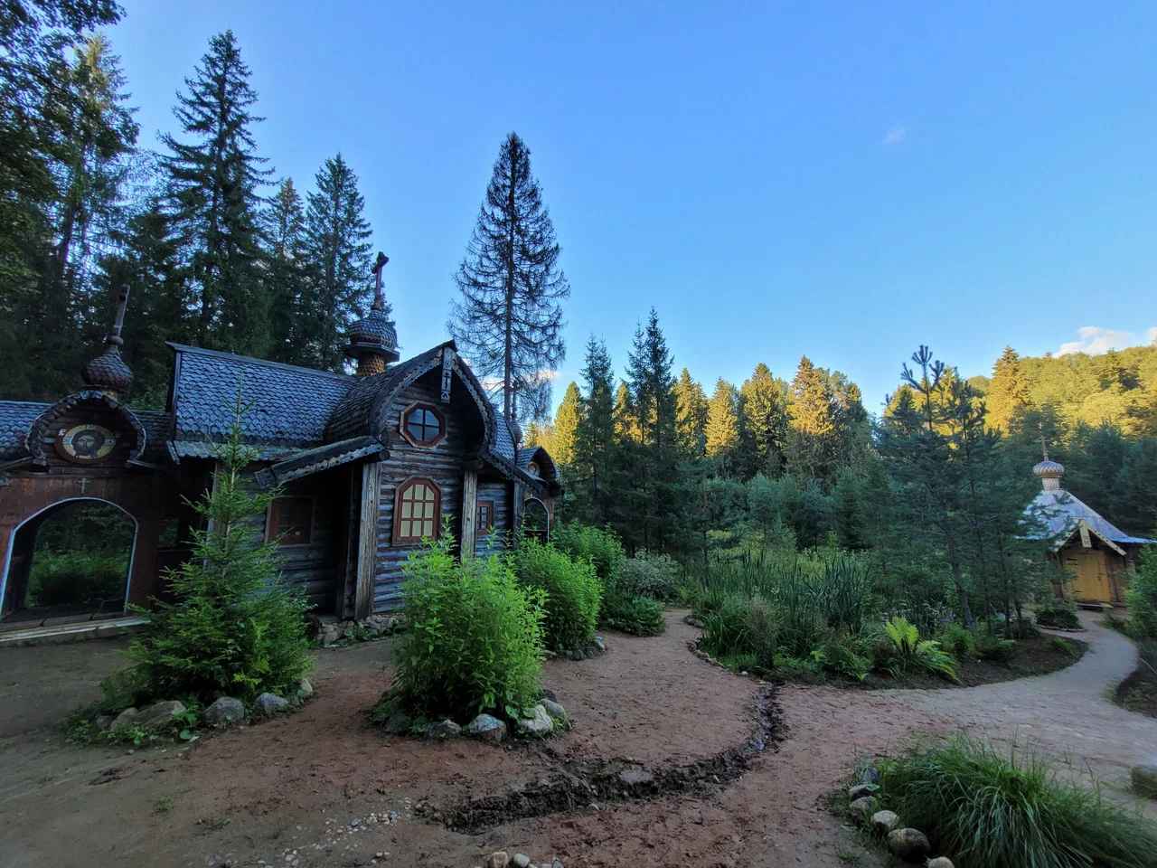 Городская суета останется вдали, а вот рядом находятся монастыри, источник и эко-тропы для прогулок. Для комфортного отдыха в глэмпинге Тишь доступны уютные домики в стиле барнхаус с панорамными окнами. Здесь вас будет окружать только успокаивающее пение птиц, завораживающее журчание ручьев и приятный шелест листьев.