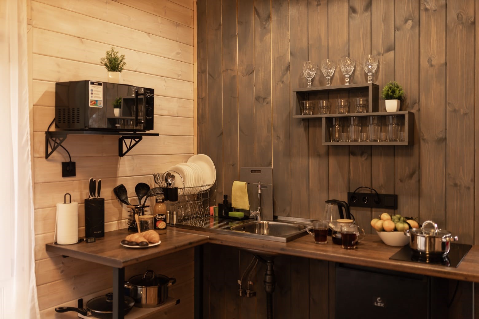 В домике есть кухня для самостоятельного приготовления еды