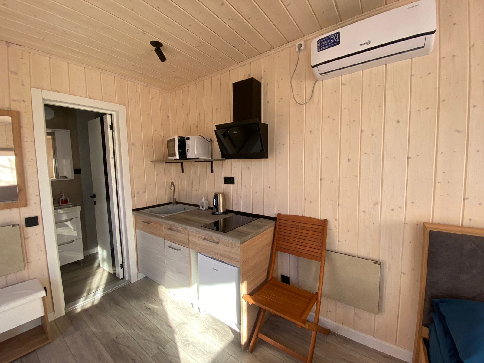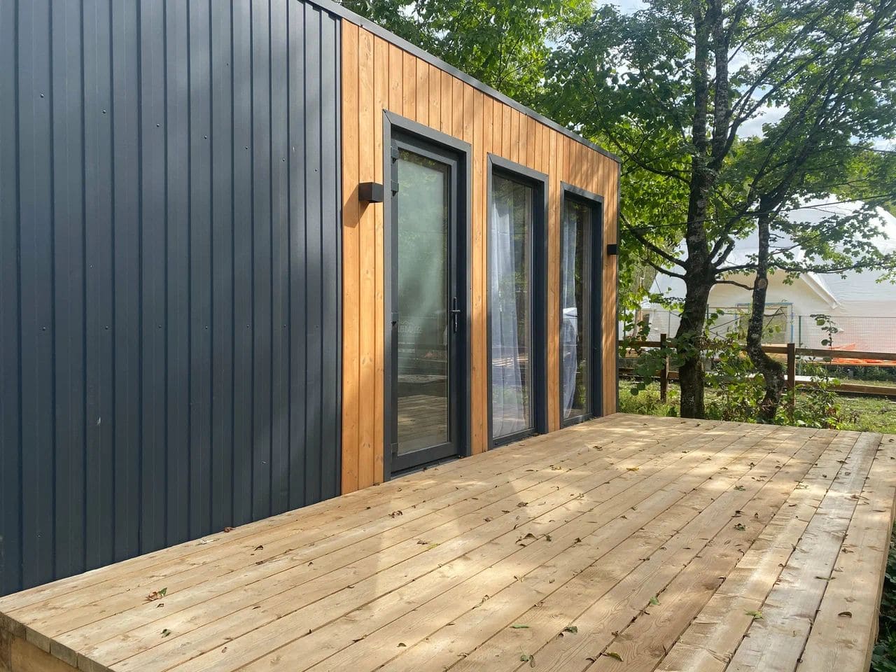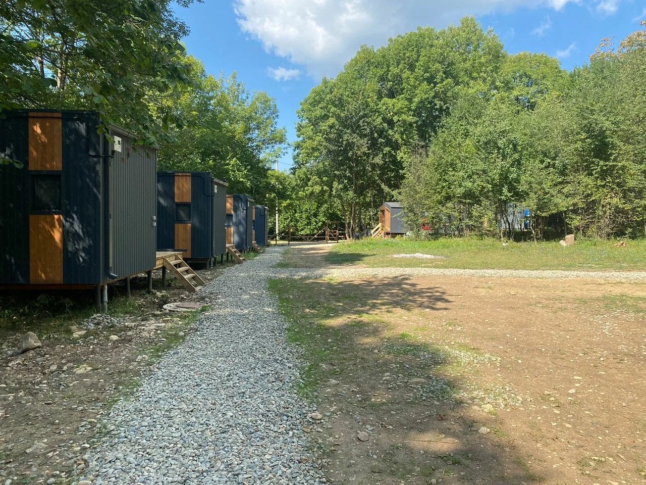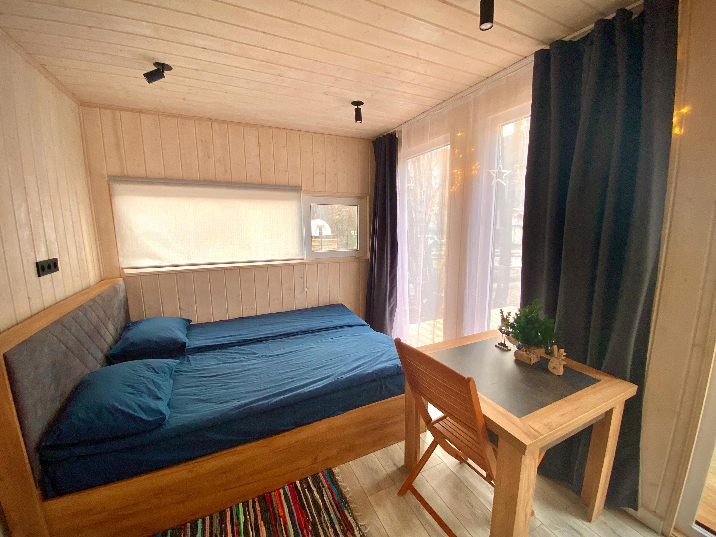 На территории для проживания установлены модульные домики со всем необходимым для комфортного отдыха на природе. Номера в глэмпинге "Высокий берег" расположены друг от друга на таком расстоянии, чтобы гости отдыхали, не беспокоясь за тишину.