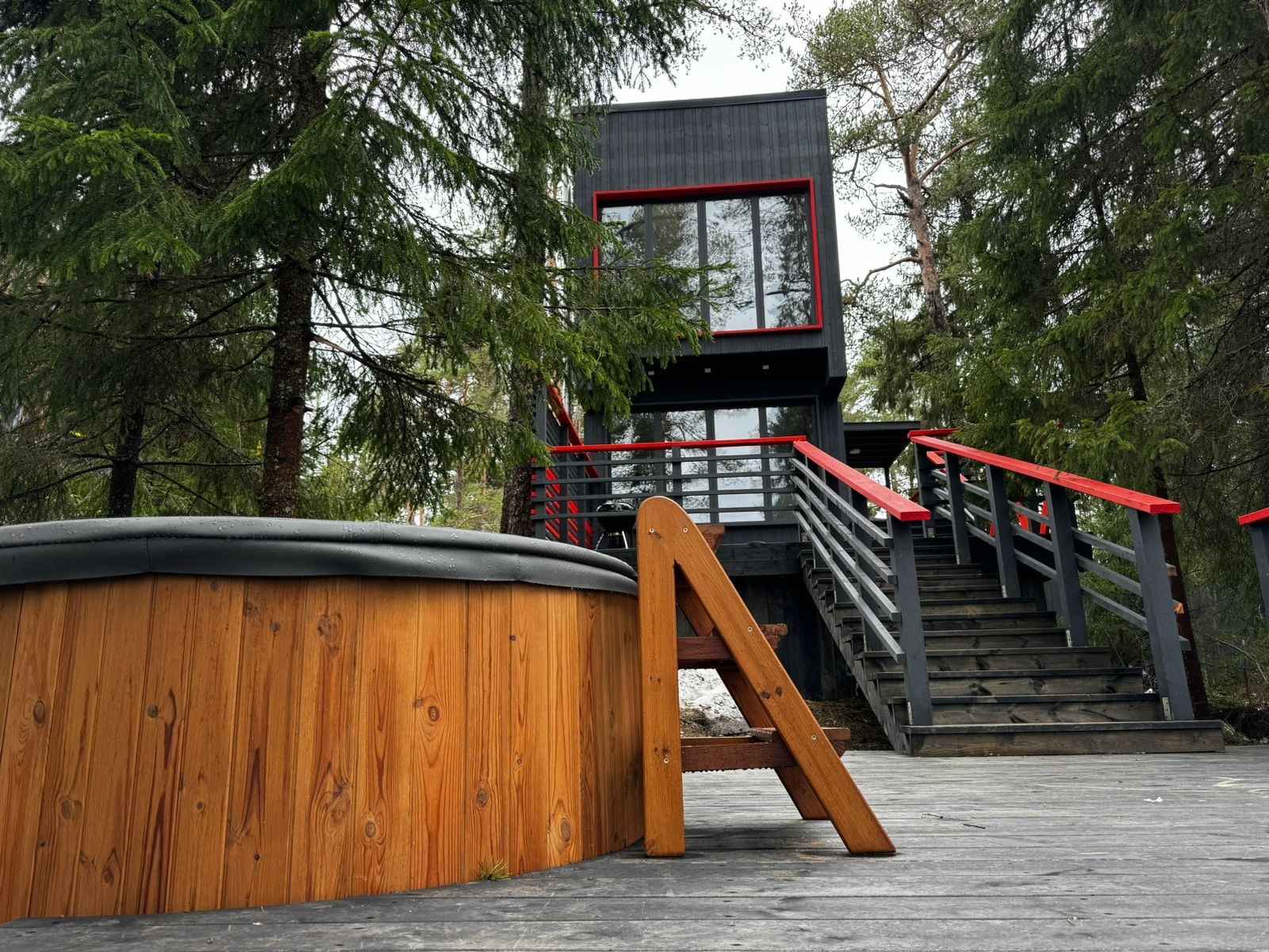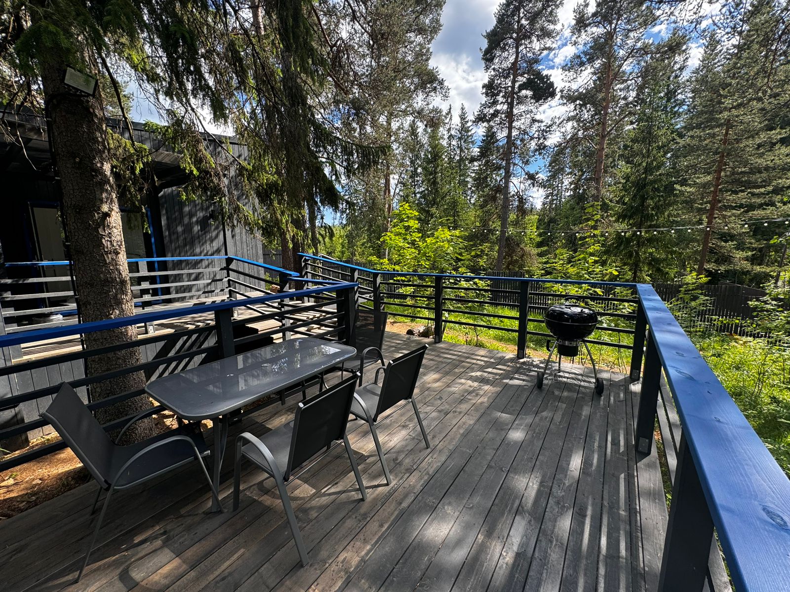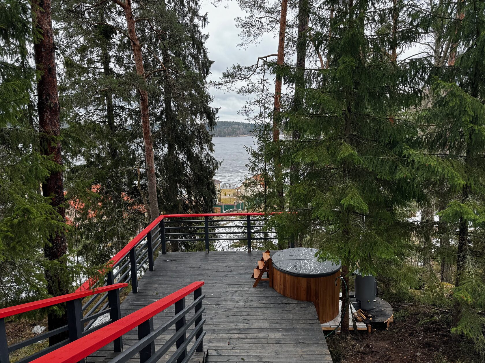 У каждого дома есть свои открытые двух или трех уровневые террасы с собственным BBQ , мебелью для комфортного времяпровождения на открытом воздухе, а так же дровяные купели для SPA процедур в окружении хвойного леса с видом на Ладогу!