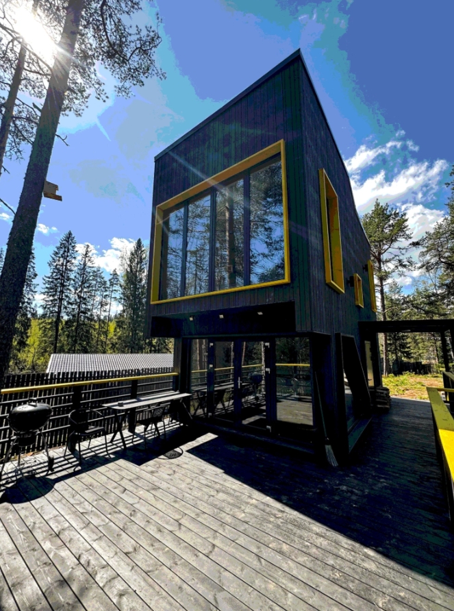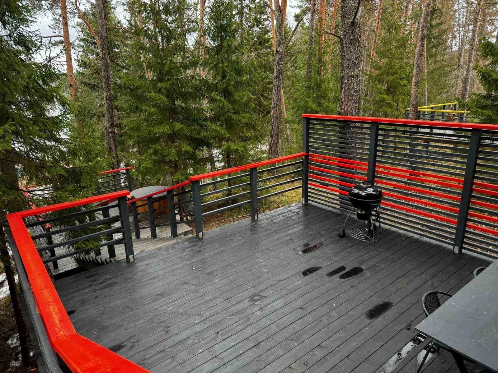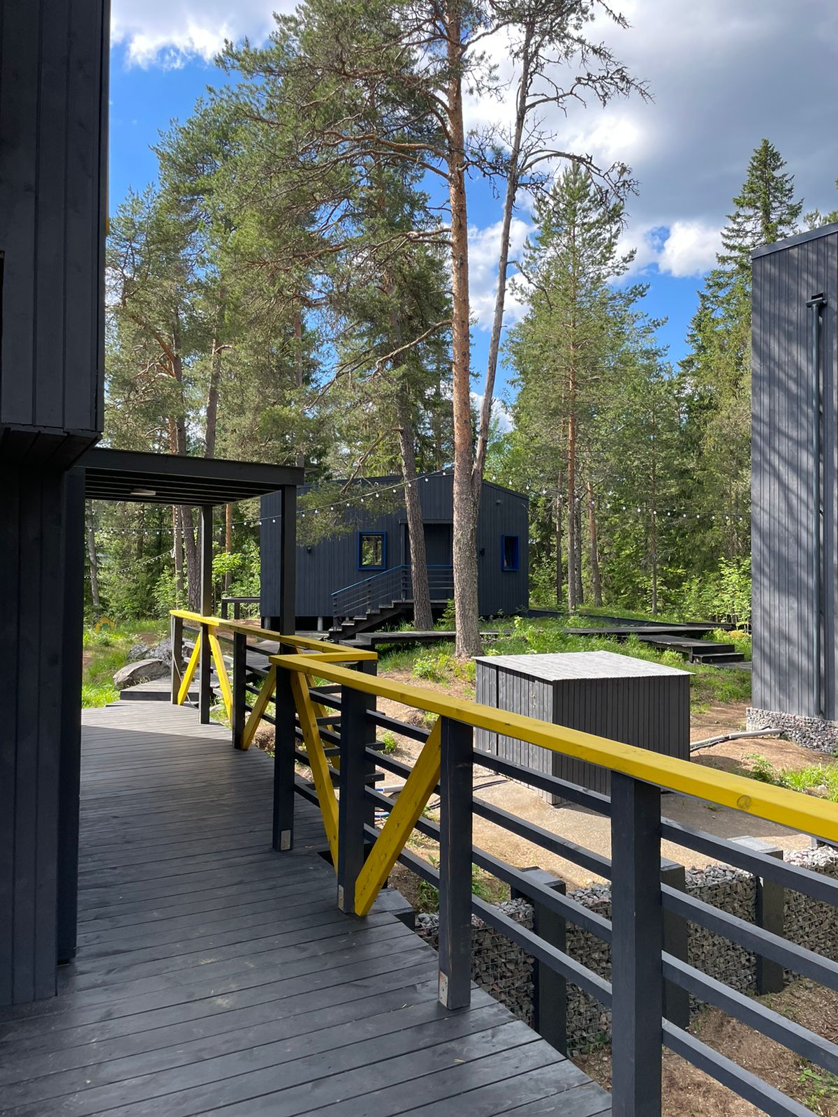 У каждого дома есть свои открытые двух или трех уровневые террасы с собственным BBQ , мебелью для комфортного времяпровождения на открытом воздухе, а так же дровяные купели для SPA процедур в окружении хвойного леса с видом на Ладогу!