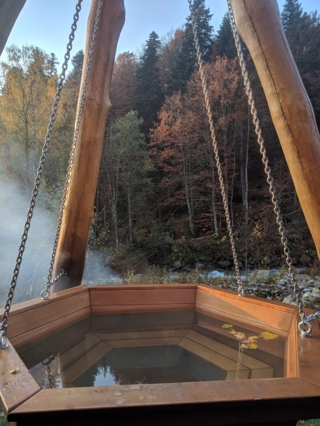 Свежий воздух, вид на горы и вода 38°-41°C. В нашем чане можно поймать дзен и укрепить свое здоровье. Чан находится на берегу реки.