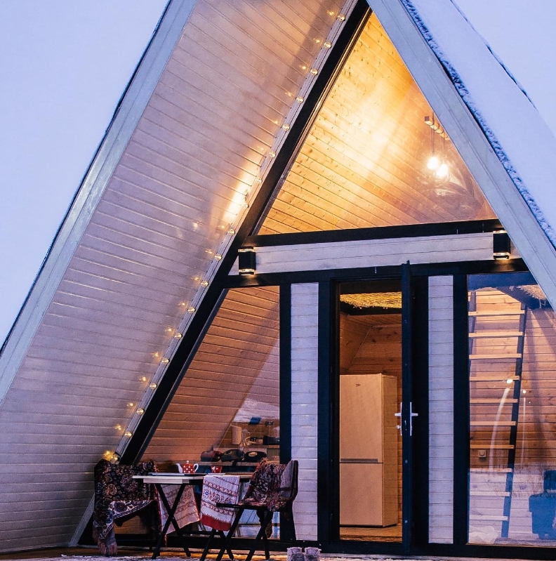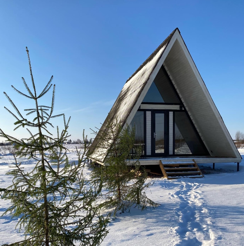 Дом-шалаш (А-фрейм) в глуши прямо на берегу Вазузского водохранилища.