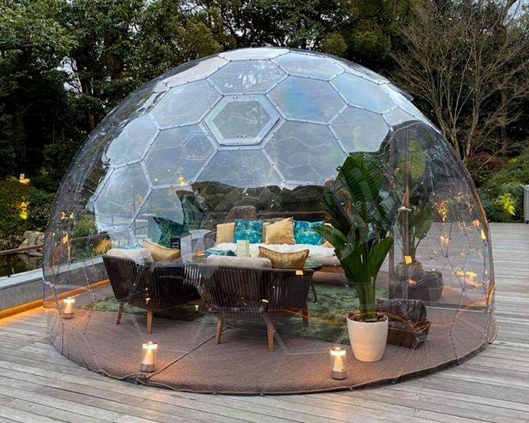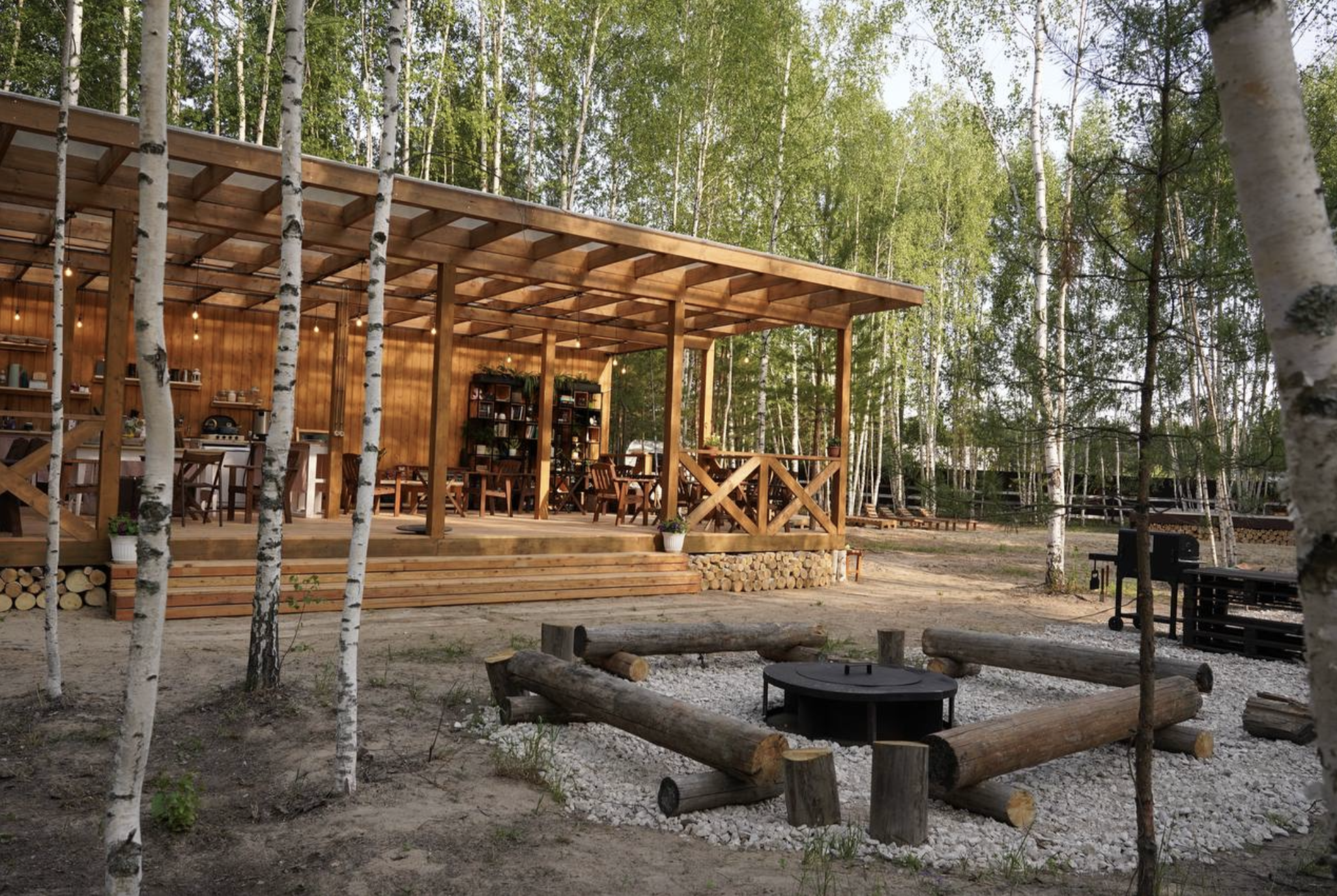 В лесу расположен мини-ресторан. Аренда купола стоит от 4000 рублей. Прозрачный купол вмещает до 10 человек и подходит для романтических свиданий, семейных торжеств, йога-практик и камерных мероприятий. Можно заказать ужин под ключ и насладиться вечером с близкими за одним столом с видом на лес.
